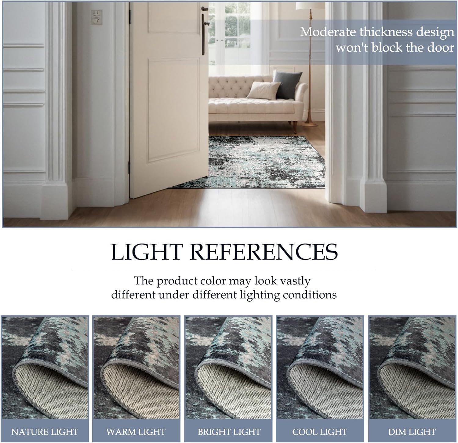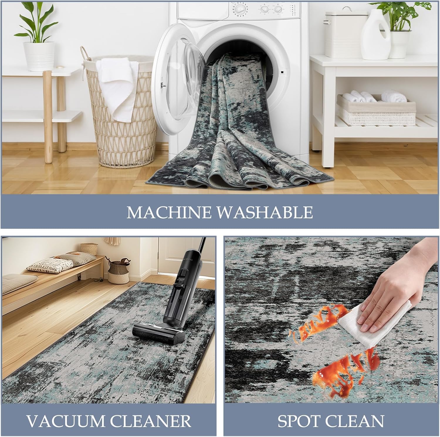 Washable Area Rugs 2'x6' Non-Slip Modern Abstract Soft for Living Room Entryway Bedroom Nursery, Print Pattern, Blue Black Teal