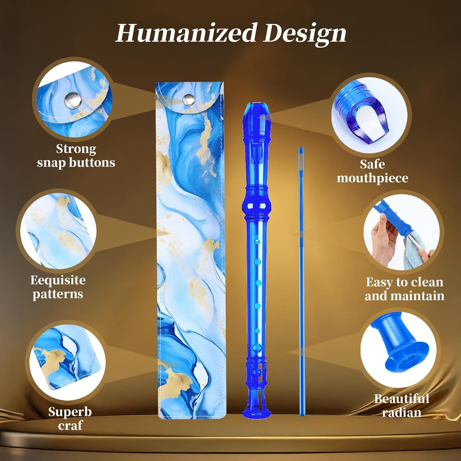 Soprano Recorder for Kids Beginners, German Fingering, C Key, 3 Piece with Cleaning Rod, Bag, Fingering Chart (Crystal Blue)…