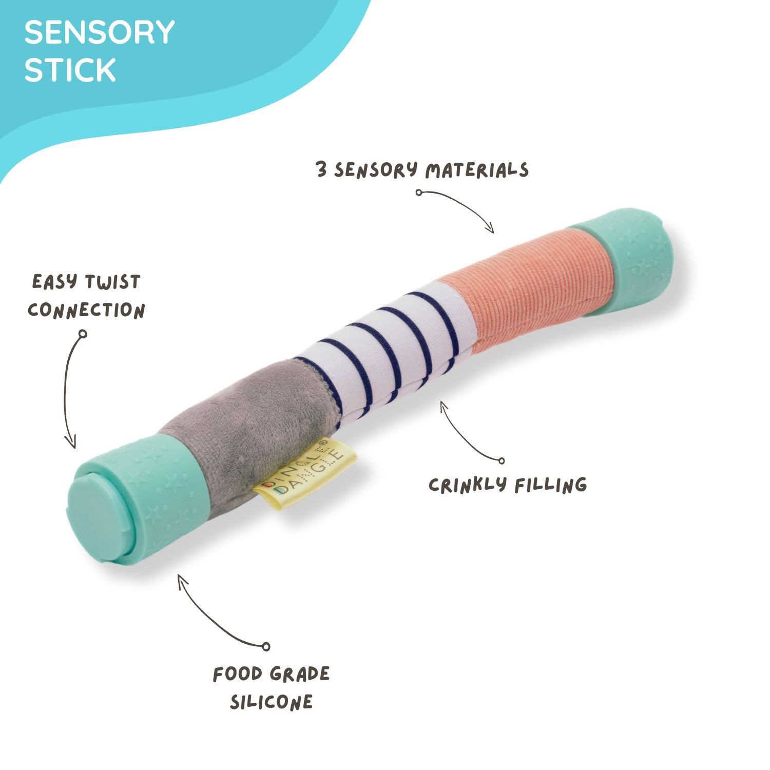 - Use 1: A sensory, head-worn baby changing helper for changing squirmy and wriggly babies; It looks so silly, however the sensory design works to distract the baby and keep them calm during changing time; Use 2: Sensory Rod: This isn’t just any rod, this is the MVP of distraction; With three different textured fabrics and high-contrast black and white colors