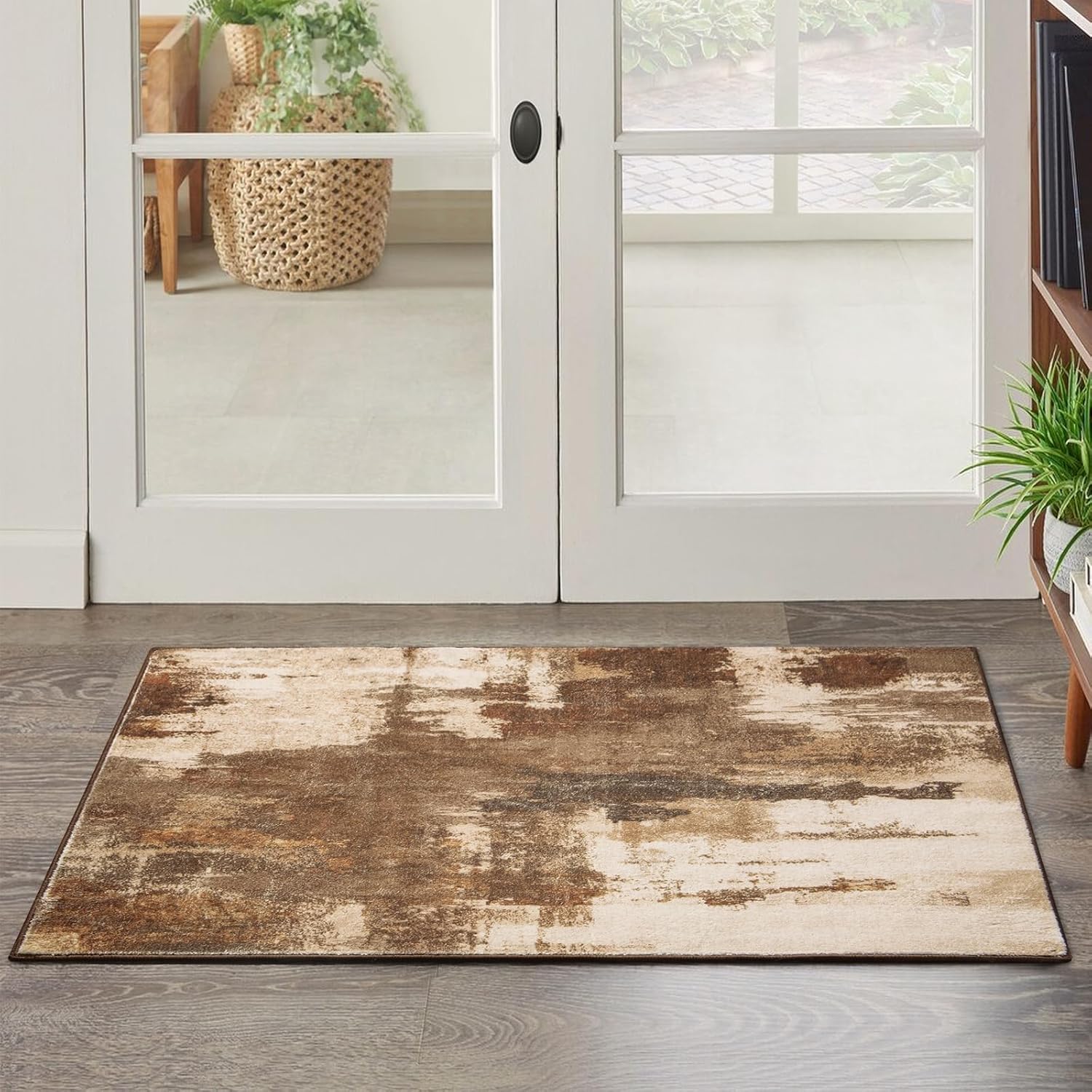 Kelarea 2x3 Brown Entryway Rug, Washable Abstract Small Rugs Non-Slip Low Pile Throw Rugs for Kitchen Floor, Front Door, Bedroom Bedside