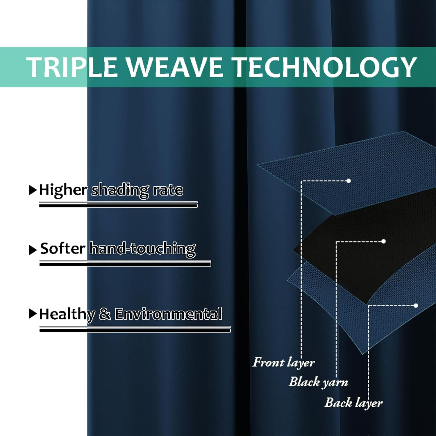- Unique Design: Draperies constructed with 2 layers are all triple weave blackout fabric, balancing room temperature by insulating against summer heat and winter chill meanwhile protect privacy. No chemical coating, no formaldehyde, bring harmony to your family.