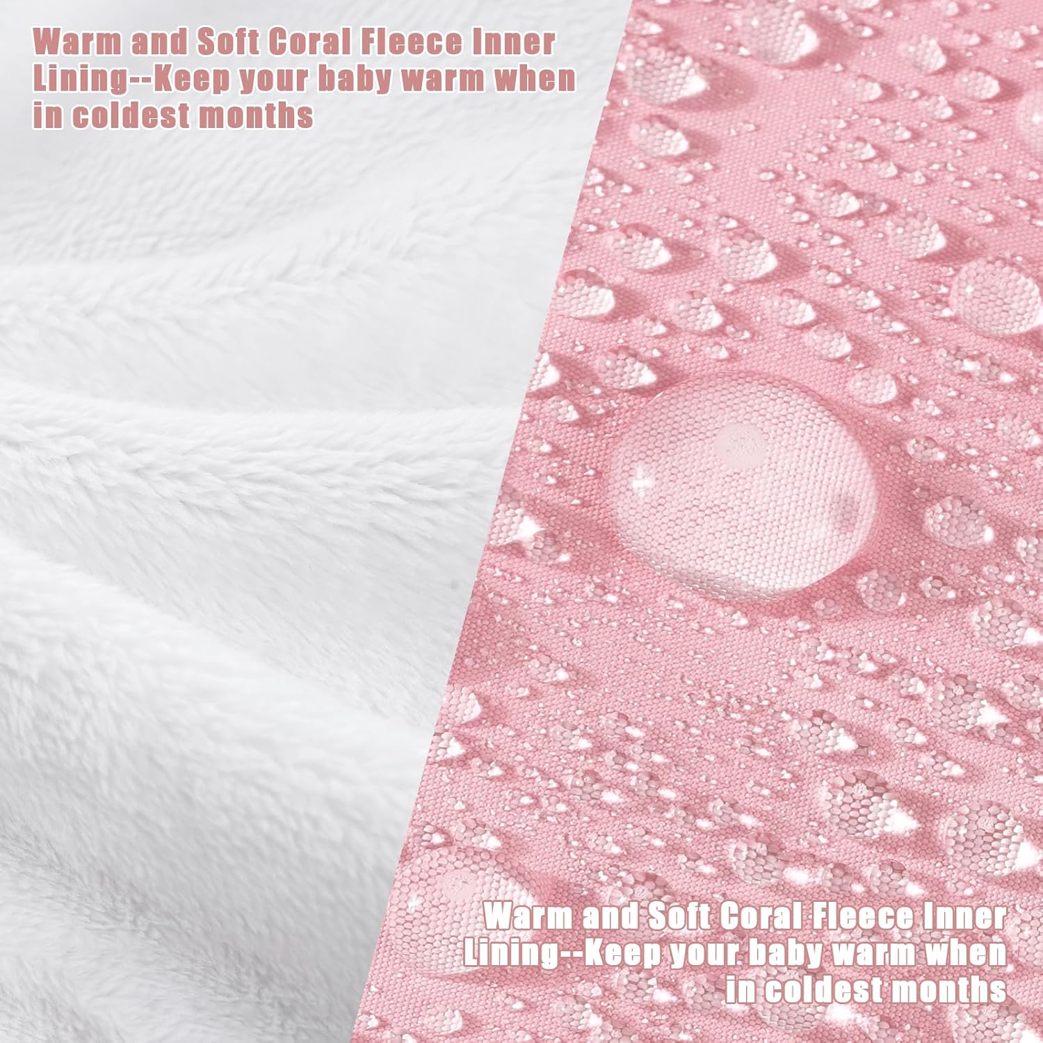 Yoofoss Stroller Cover for Winter, Toddler Stroller Footmuff Universal for Most Stroller, Water Resistant Warm Coral Baby Stroller Bunting Sleeping Bag Pink