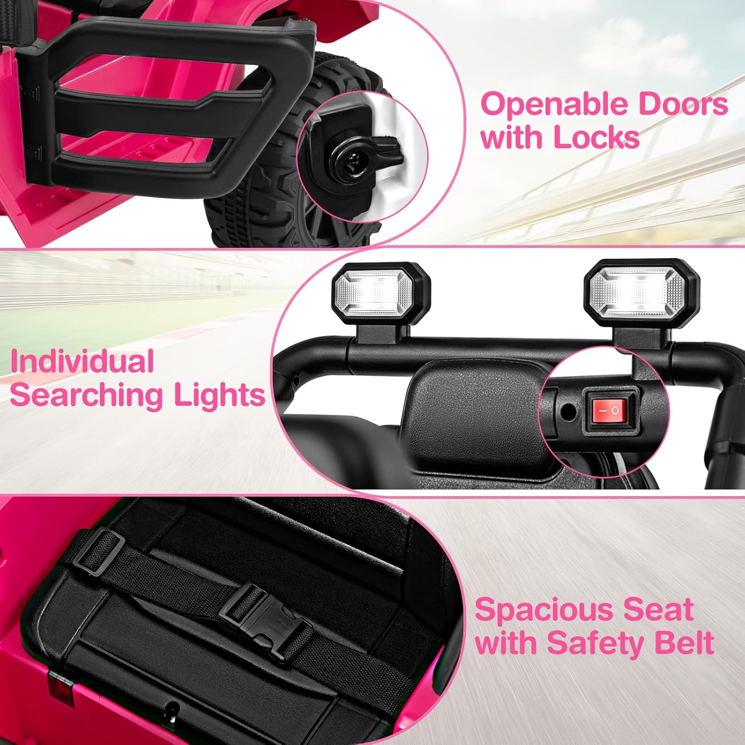 - 【Safe & Reliable Construction】 Constructed from BPA-free material, the electric ride on truck is equipped with adjustable safety belt, lockable doors to ensure durability and safety. It complies with ASTM and CPSIA standards, serving as a reliable and perfect gift for boys and girls over 3 years old.
