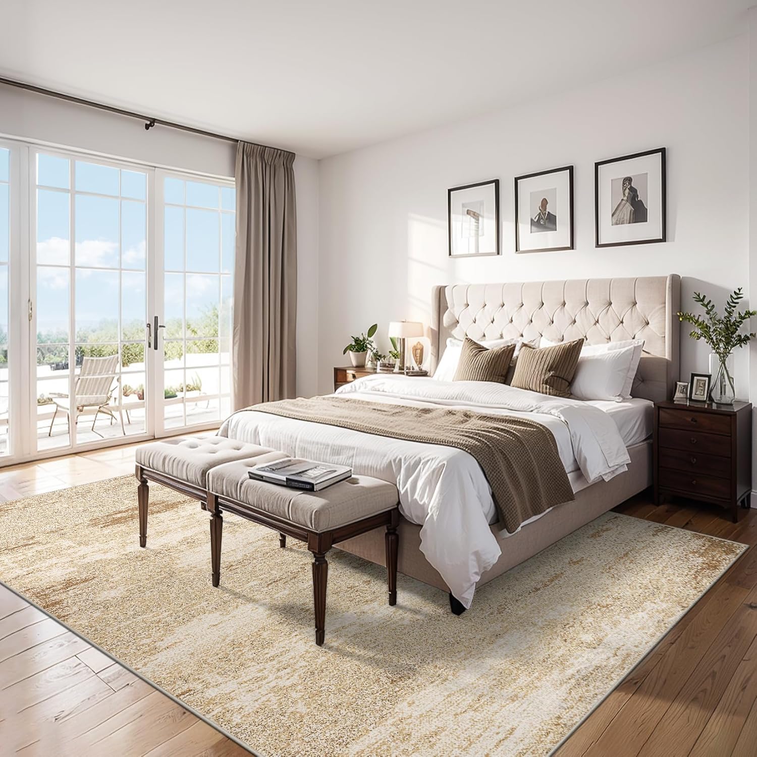 8x10 Area Rugs for Living Room - Washable Rug Modern Abstract Soft Large Neutral Non-Slip Carpet Indoor Floor Stain Resistant Thin Carpets for Bedroom Dining Room Farmhouse Nursery Home Office Beige