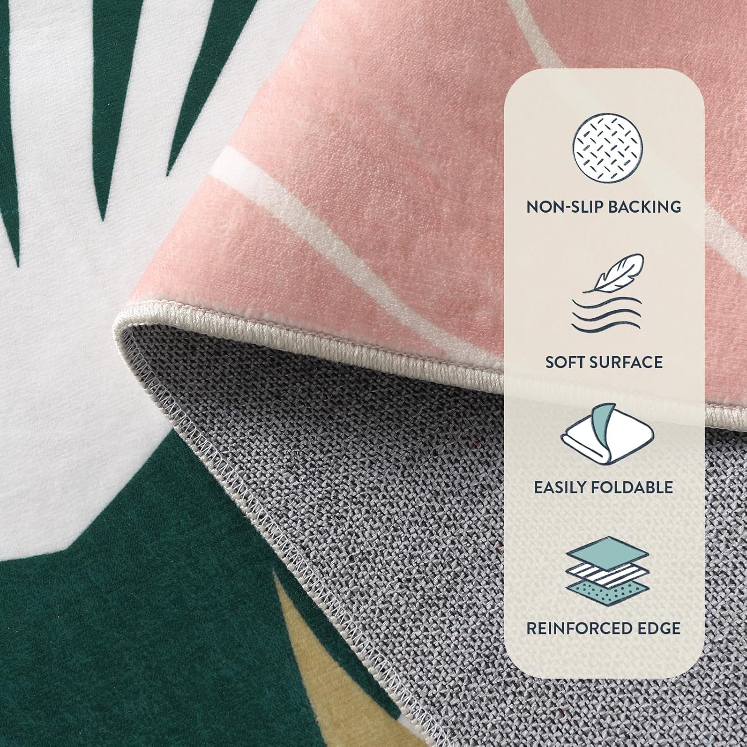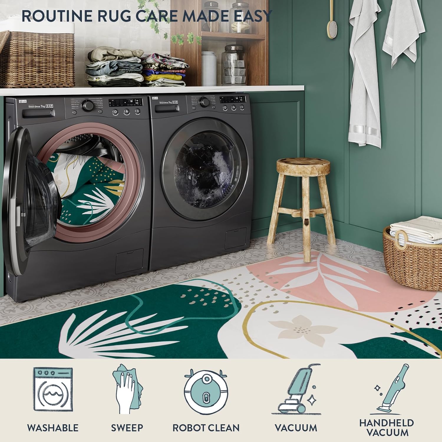 Lahome Washable 8x10 Rug - Non-Slip Living Room Rugs 8x10 Ultra-Thin Large Soft Bedroom Rugs, Boho Botanical Print Indoor Stain Resistant Floor Rug for Dining Room Table Office (8'x10',Green/Pink)