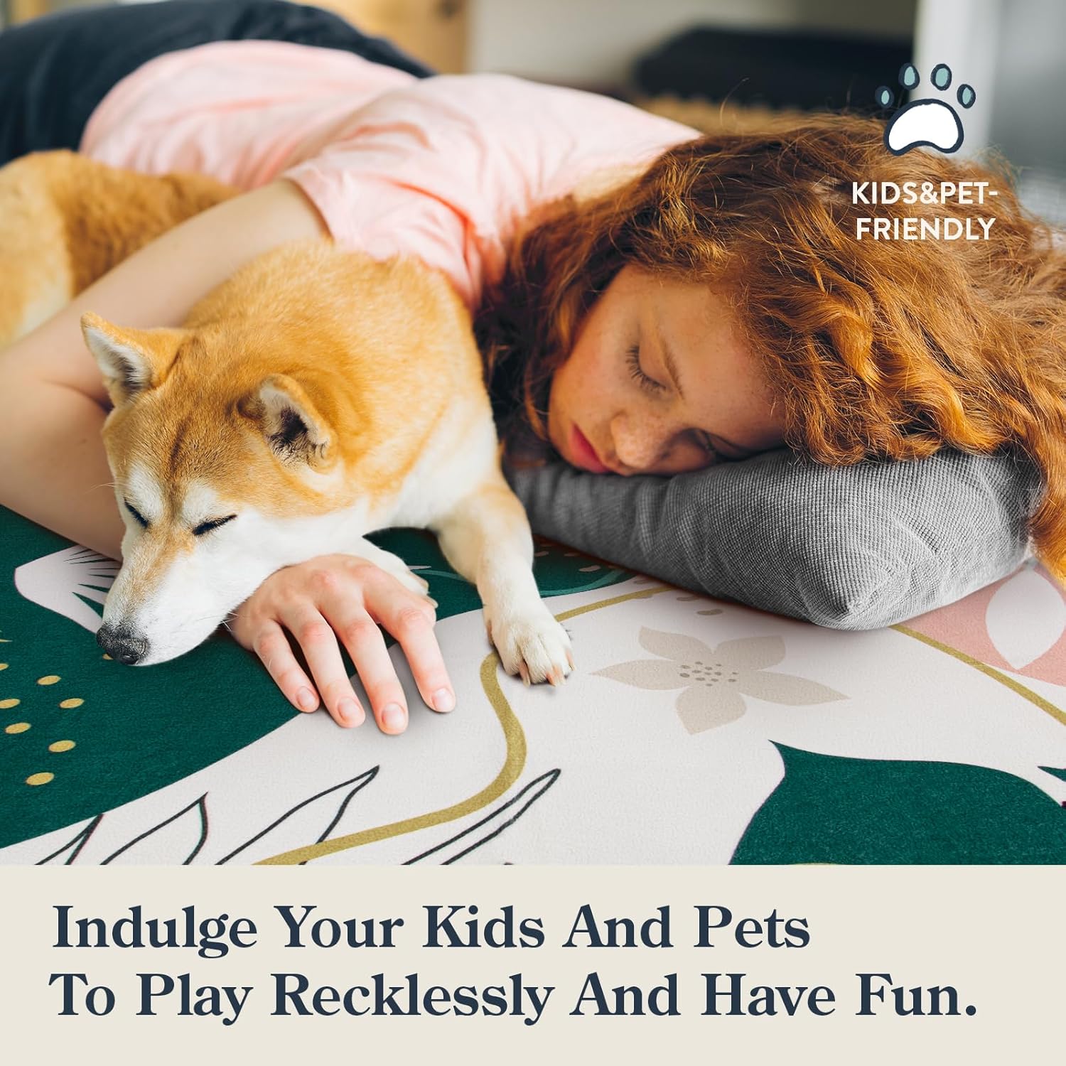 Lahome Washable Rug 5x7 - Rugs for Living Room 5x7 Non-Slip Ultra-Thin Carpet for Bedroom Cute Soft Kids Nursery Rug, Boho Botanical Print Indoor Floor Rug for Entryway Office (5'x7',Green/Pink)