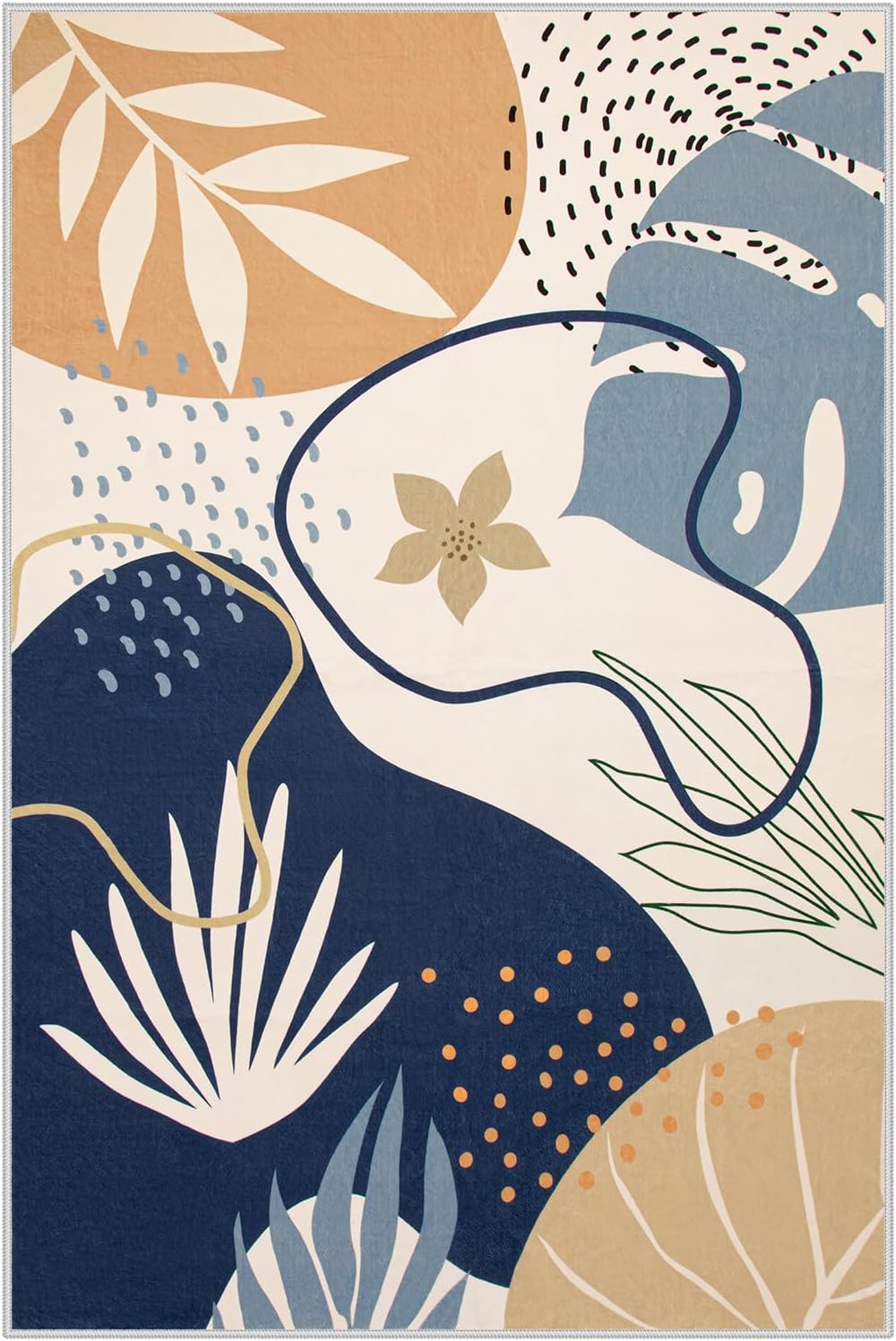 Lahome 4 x 6 Area Rug Living Room Carpet - Washable Soft Rugs for Bedroom Non-Slip Ultra-Thin Floor Rug for Office, Boho Botanical Print Stain Resistant Indoor Rugs for Kitchen Entryway Laundry Room