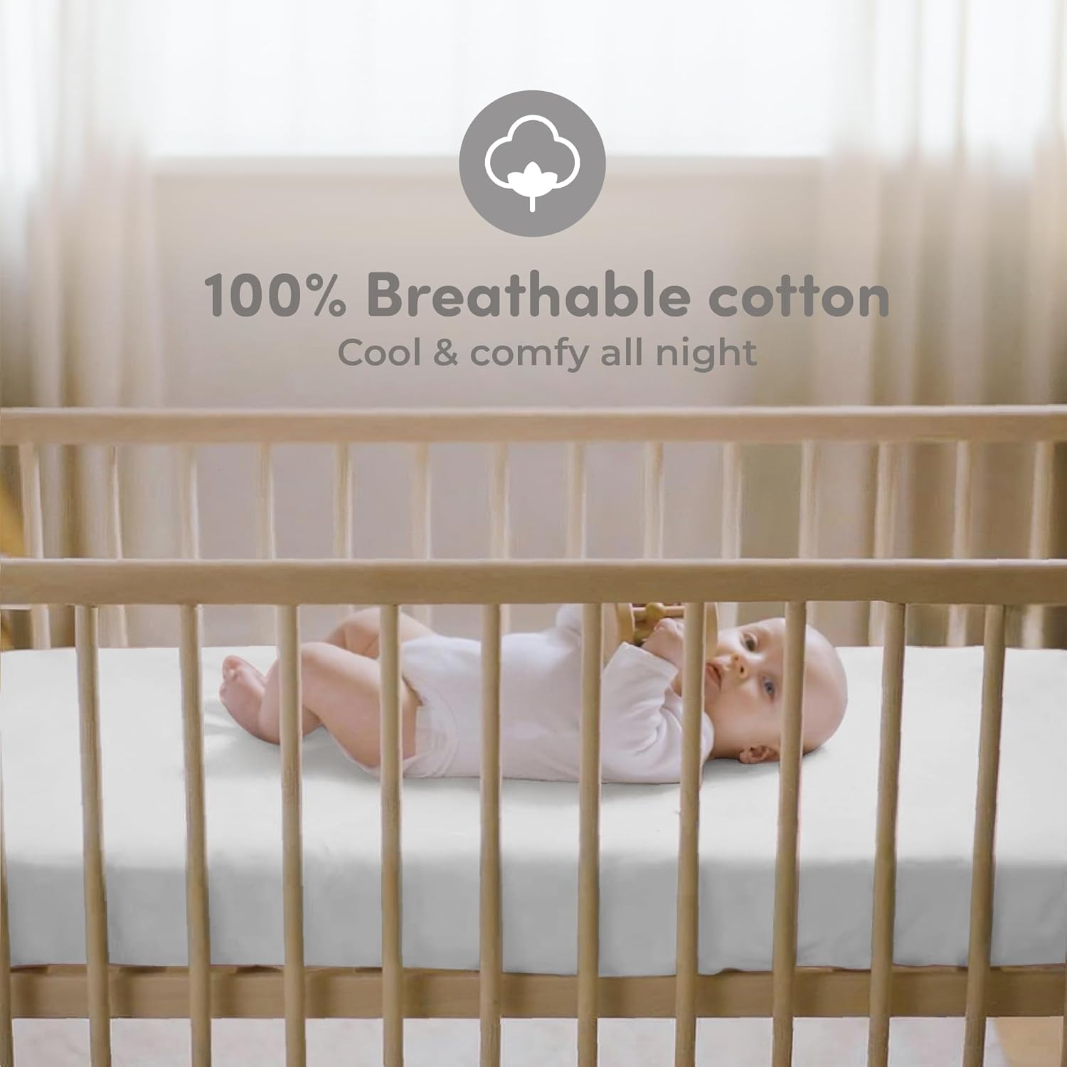 - Soft & Gentle on Baby’s Skin: Crafted from 100% premium jersey cotton, these crib sheets offer a soft and breathable surface, ideal for keeping your baby comfortable during sleep. The fabric is gentle on even the most sensitive skin, making it perfect for newborns and toddlers alike.