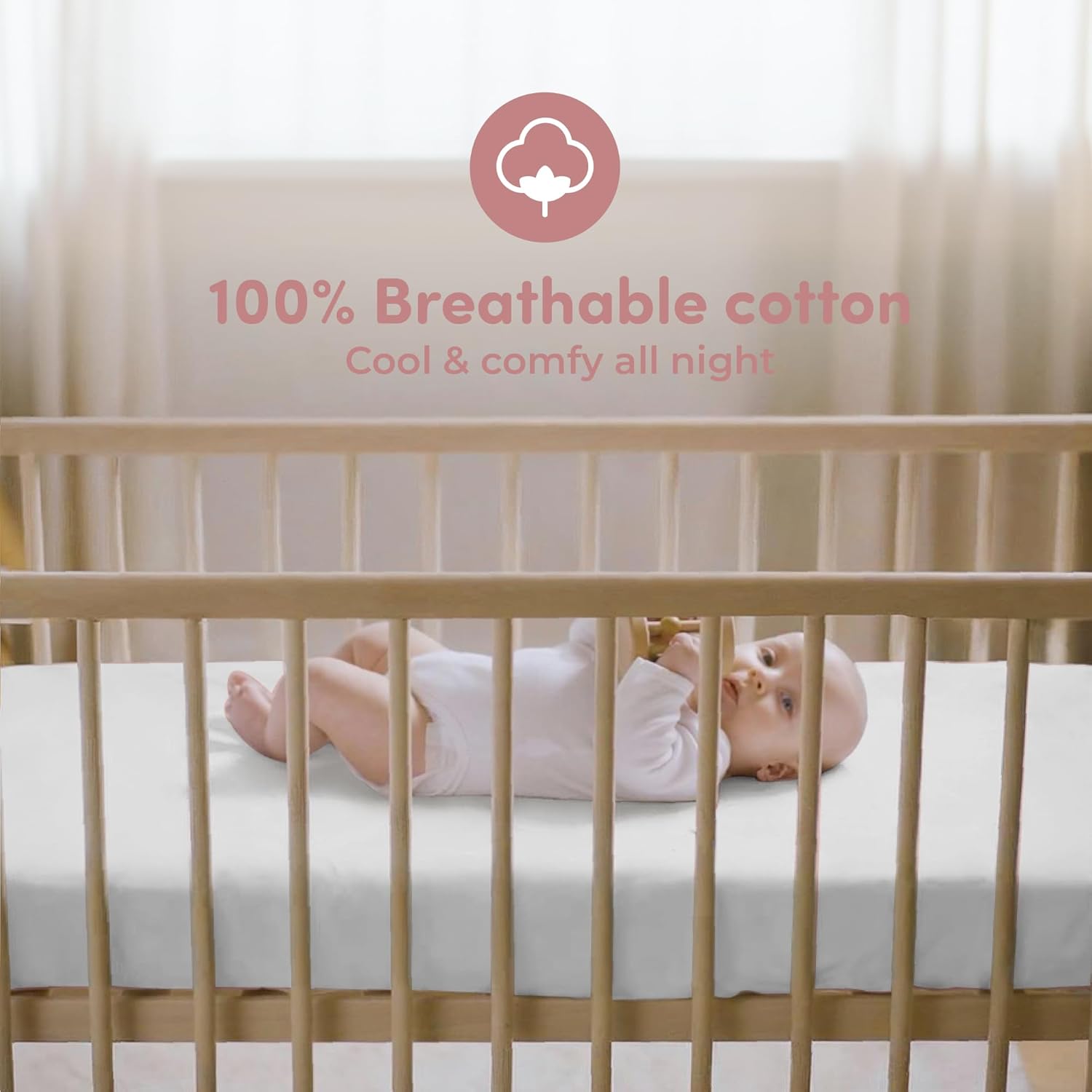 - Soft & Gentle on Baby’s Skin: Crafted from 100% premium jersey cotton, these crib sheets offer a soft and breathable surface, ideal for keeping your baby comfortable during sleep. The fabric is gentle on even the most sensitive skin, making it perfect for newborns and toddlers alike.