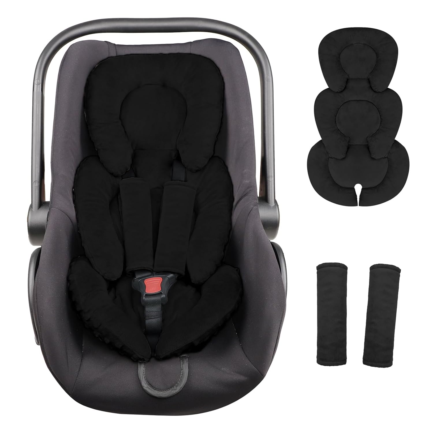 Infant Car Seat Insert Head and Body Support, GFU Reversible Newborn Insert for Carseat with Strap Pads, Soft Stroller Cushion Pillow Insert for Boys and Girls, Fits for Stroller, Swing, Black