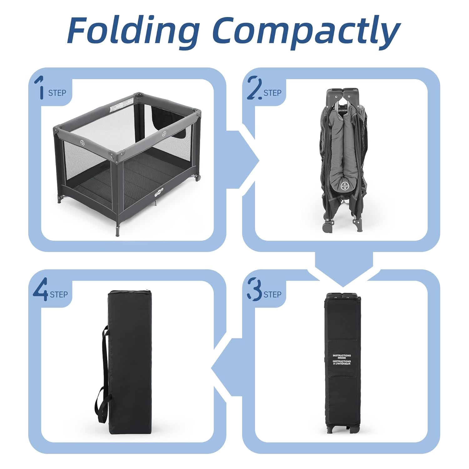 - ăFolding & Detachable Designăâ The bassinet can be easily removed from the baby playard. The baby travel playard is compact and doesn't take up much space. A carry bag is convenient for storage and transport,the travel cot fits in the trunk of a car and is perfect for travel.If you have limited living space, you are definitely going to fall in love with this amazing playard.
