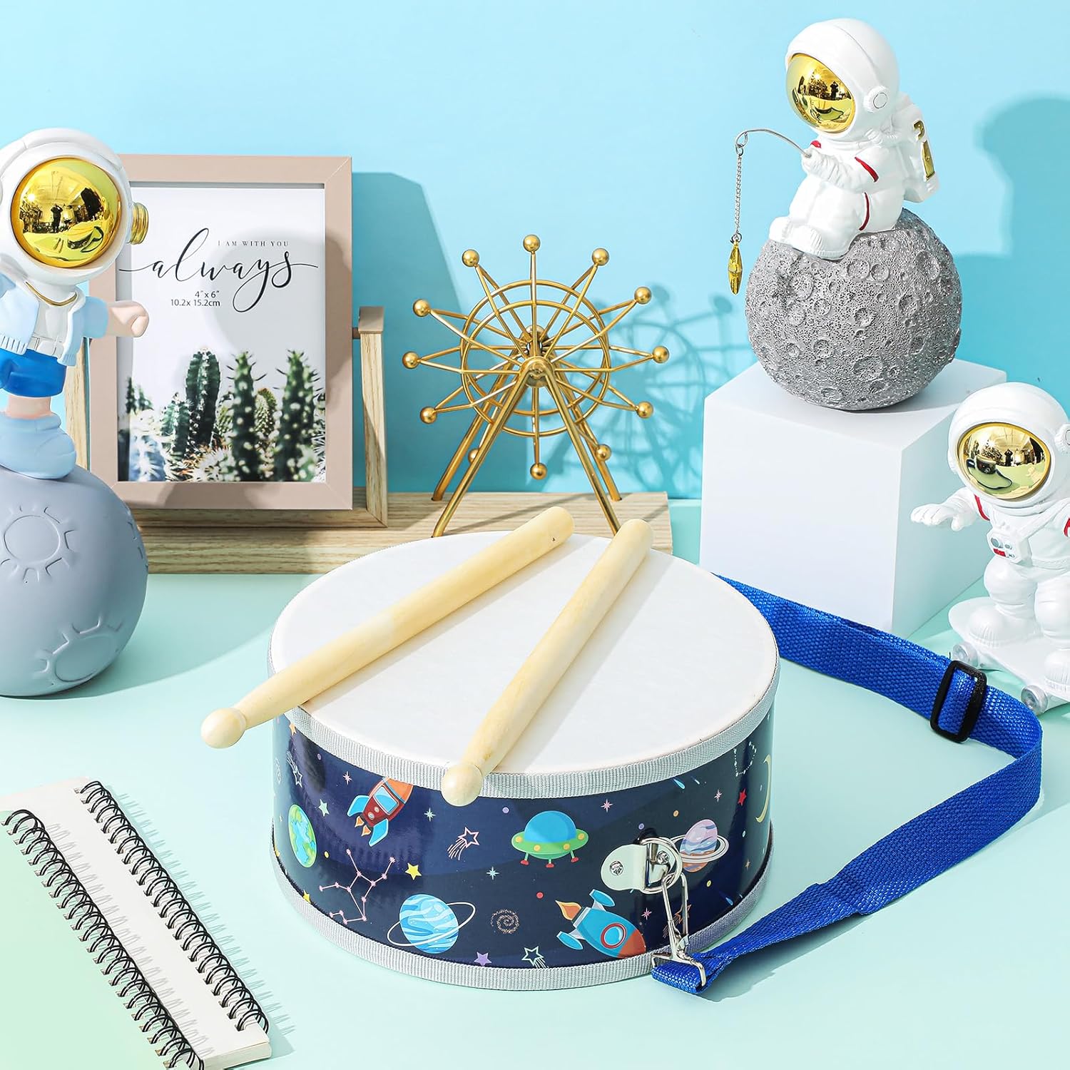 Boao 1 Pc Kids Drum Set, 8 Inch Toddler Drum Wooden Toy with Adjustable Strap and 4 Drumsticks, Educational Sensory Musical Instrument for Toddlers Kid Baby Boys Girls Gift (Space)