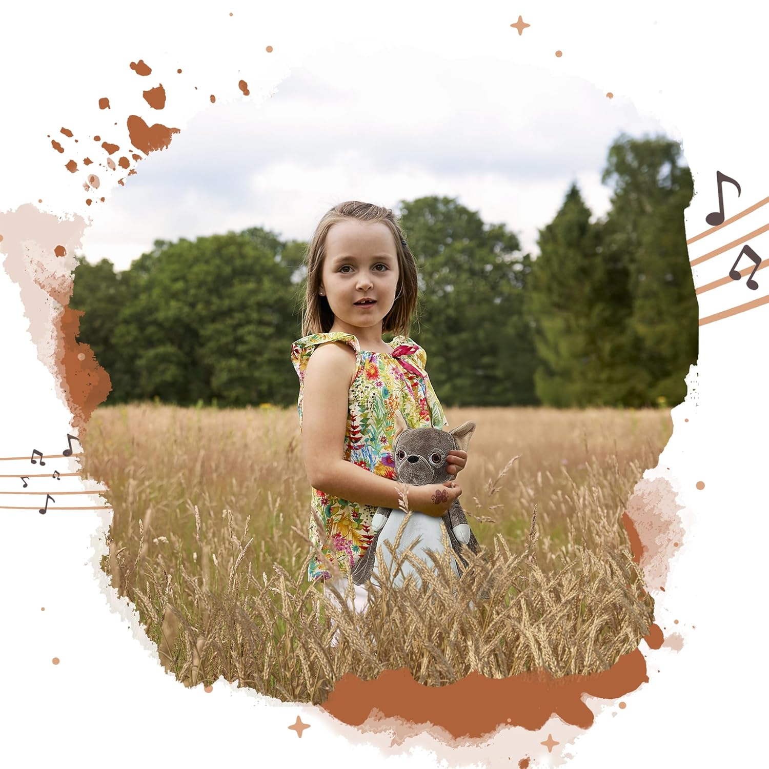 Love By Emi Baby Music Lovey Brown Bulldog, Baby Sleep Soother for Crib & Cuddle Bedtime, White Noise with Heartbeat & Lullaby, Plush Sound Machine Toy, Stuffed Animal for Newborns, Infants & Toddlers