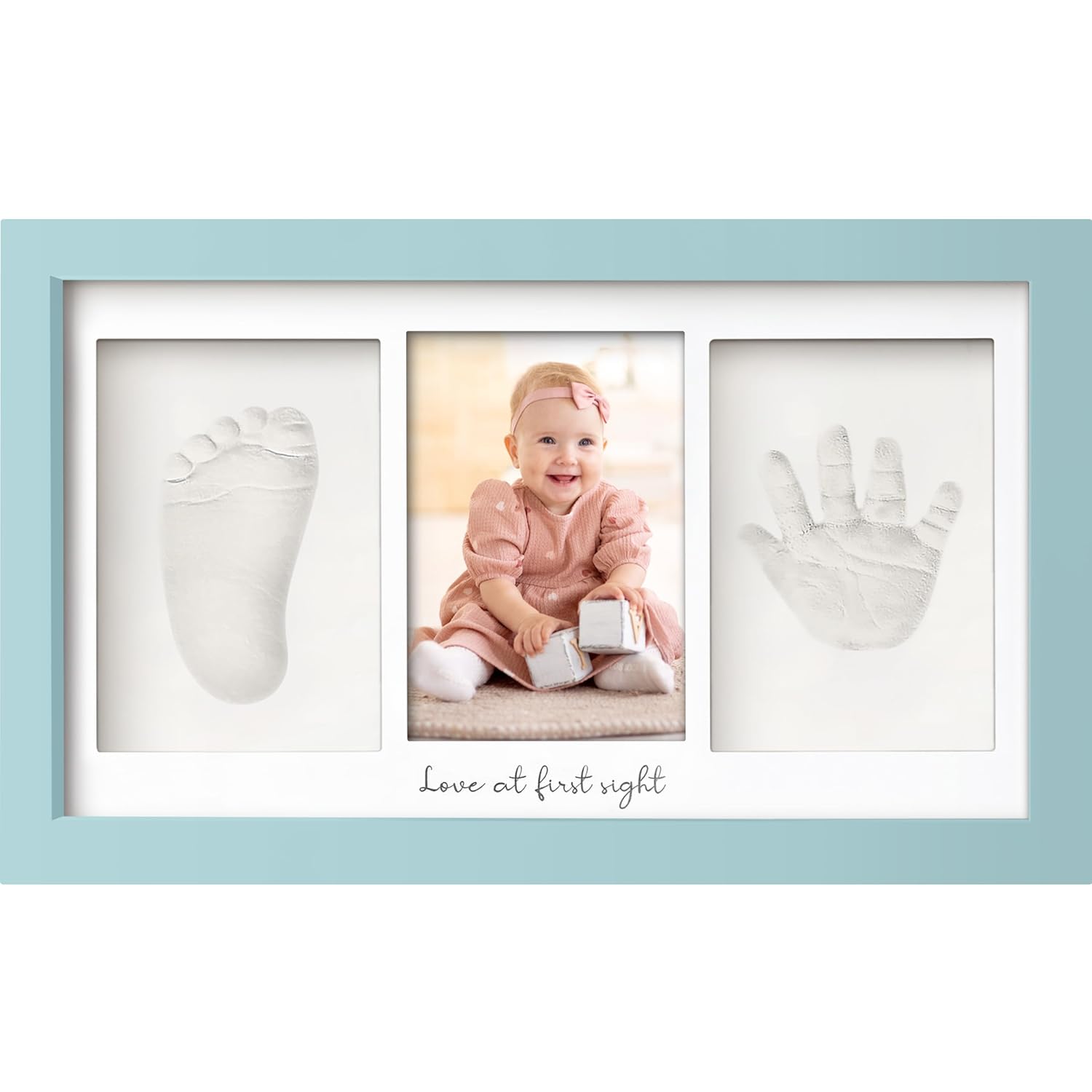 Baby Hand and Footprint Kit - Clay Handprint Keepsake Frame, Newborn Nursery Picture Frame, Personalized New Mom Gifts for Baby Shower & Registry (Sky Blue)
