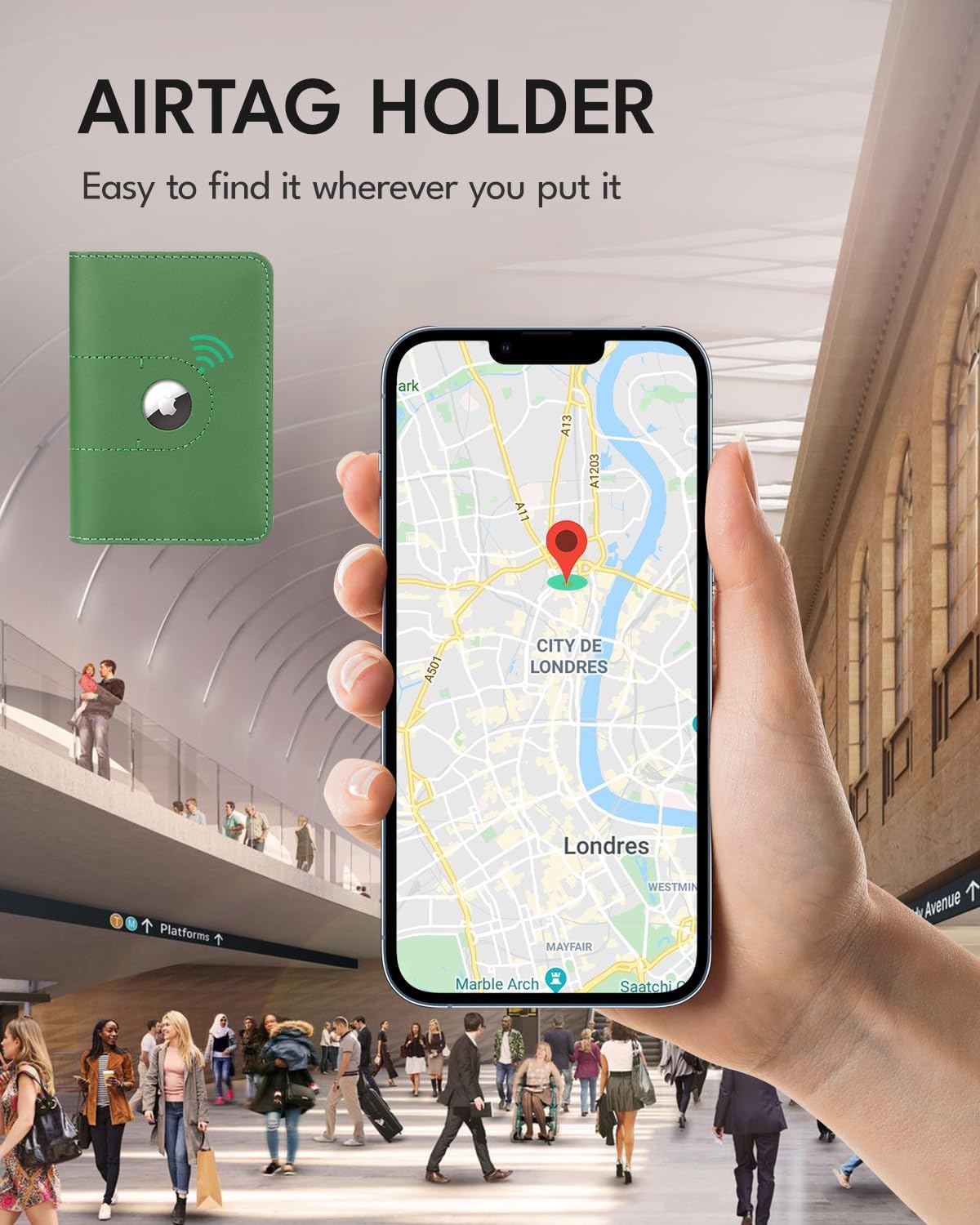 ALLIVE Genuine Leather Passport Holder With Airtag for Women Men - Travel Must-Haves, Airport Essentials, Passport Cover Gift - Green
