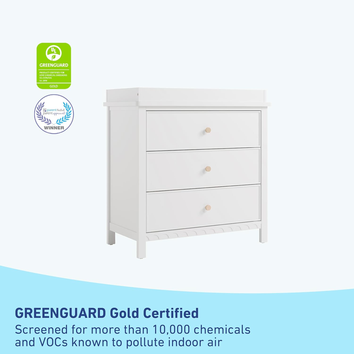 Graco Sasha 3-Drawer Chest with Changing Table Topper (White) – GREENGUARD Gold Certified, Nursery Bedroom Wood Chest with Spacious Storage, Interlocking Drawer System, Pre-Installed Tracks