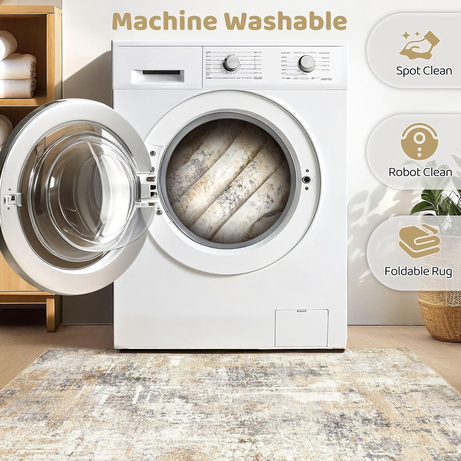 - MACHINE WASHABLE: Our rugs for living room is washable for easy care, directly toss in washing machine in cold water. for minor stains, simply vacuum with a hand-held vacuum or shake off outdoors. for water or coffee stain, wipe with a dry towel promptly