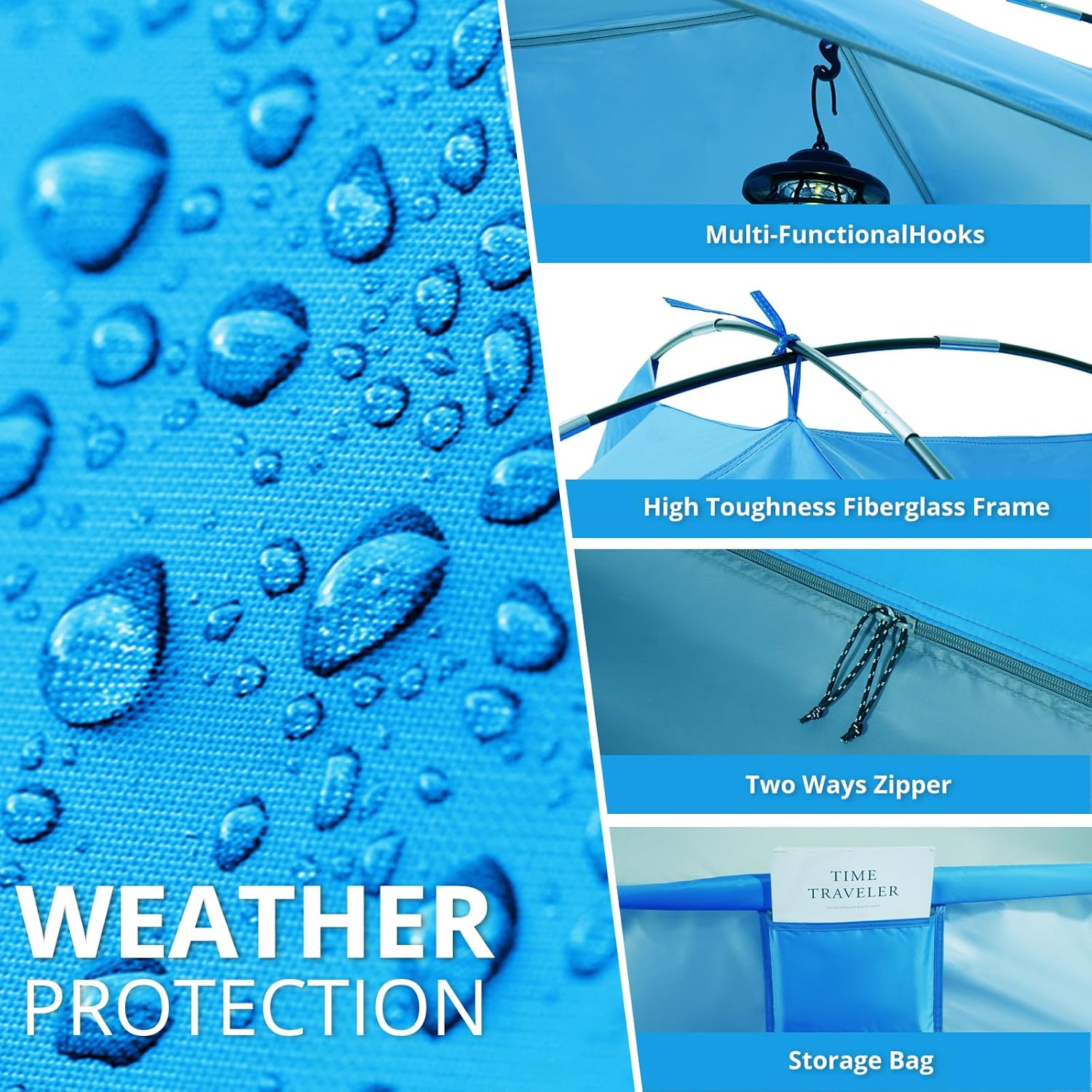 - 🎒【Lightweight and Portable Design】 Weighing only 9 pounds (6-person model), it can be packed into a 47"x8" tote bag - lighter than a beach cooler! The fiberglass poles can be locked in 90 seconds, perfect for car trunks, RV trips or lakeside picnics.