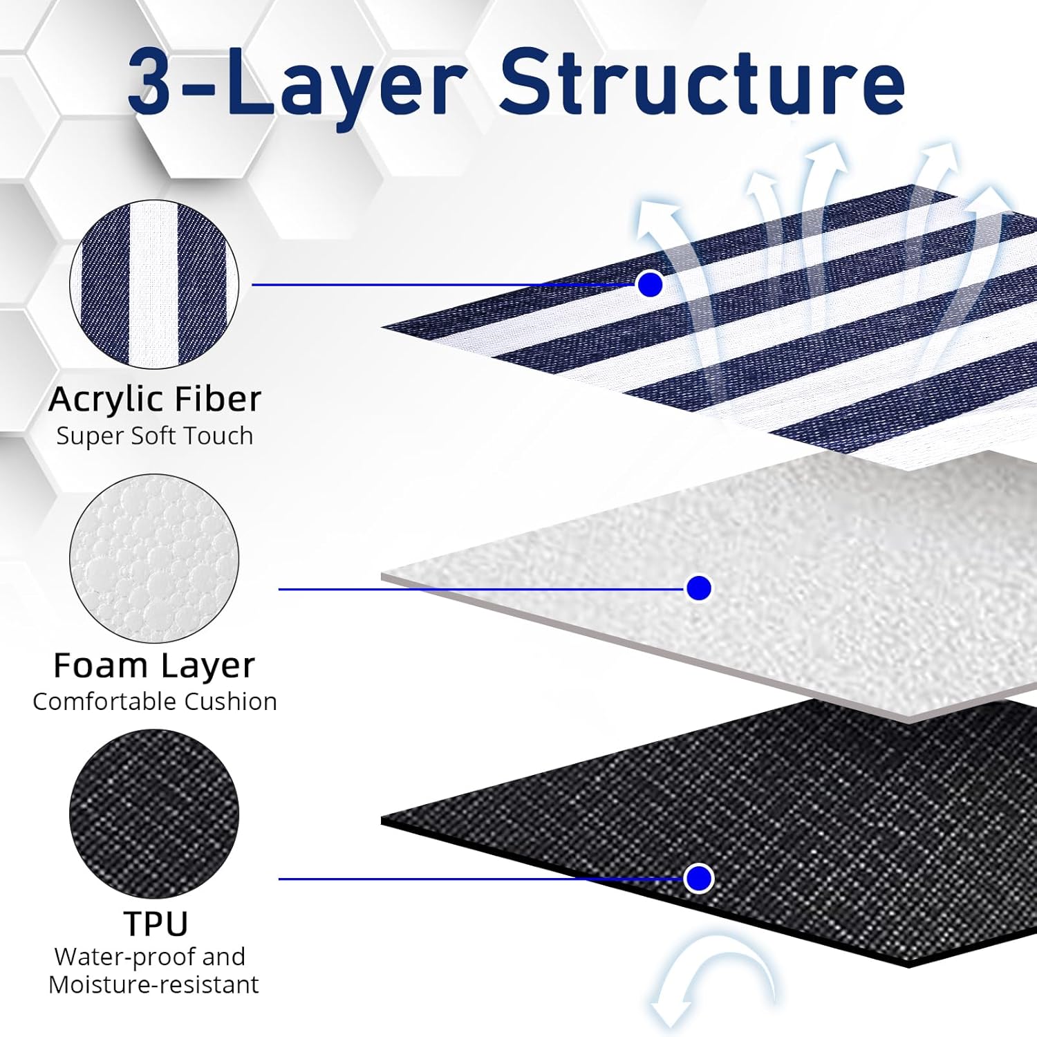 - [ 3 Layers Comfortable Structure] The top of this picnic blanket is acrylic fiber, the middle is foam, and the bottom is a TPU waterproof layer. The picnic blanket is perfectly suitable for siting or lying on the grass, beach and patio, and will keep you soft and comfortable.