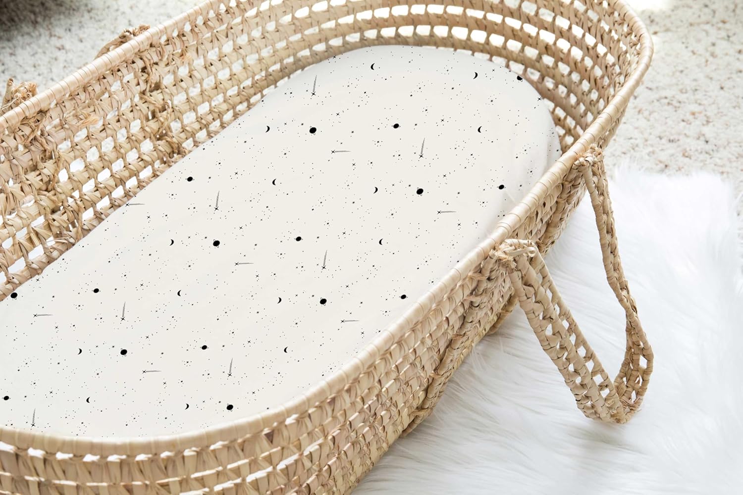 - Perfect Gift for Baby Boys & Girls: Bundled in charmingly cute and compact packaging, this 2-pack sheet set makes for the perfect baby shower gift. Include this breathable, and soft changing pad sheet set in Black and White Celestial Print to your gift registry, ensuring comfort and style for the newest addition to your family.