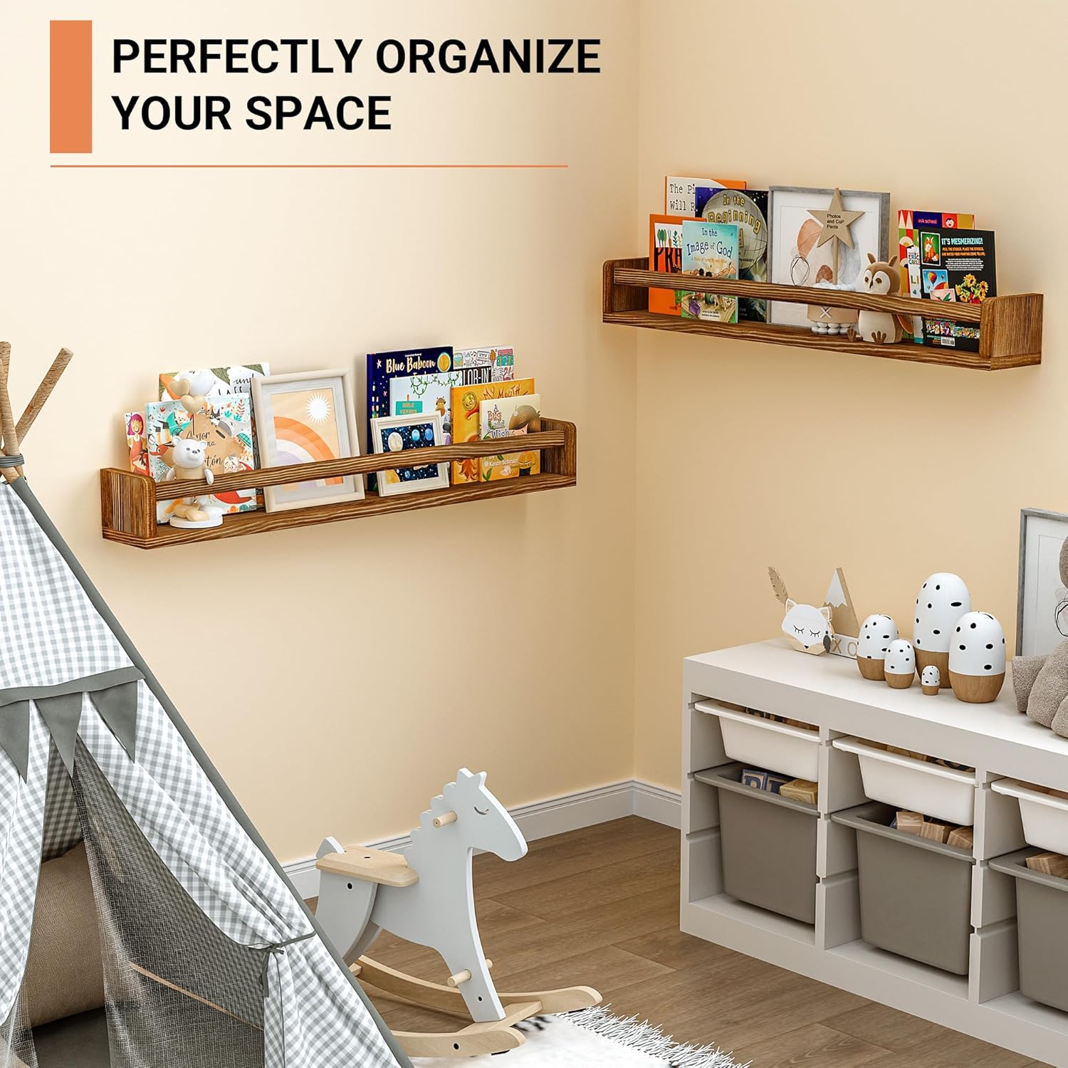 - [Versatile Nursery Shelves] - Heimlove floating shelves offer two installation options, allowing you to mount them either upwards or downwards, effortlessly adapt them to fit any space or aesthetic.They are perfect as a chic bookshelf for a nursery, a display shelf for the living room, or a spice rack for the kitchen.