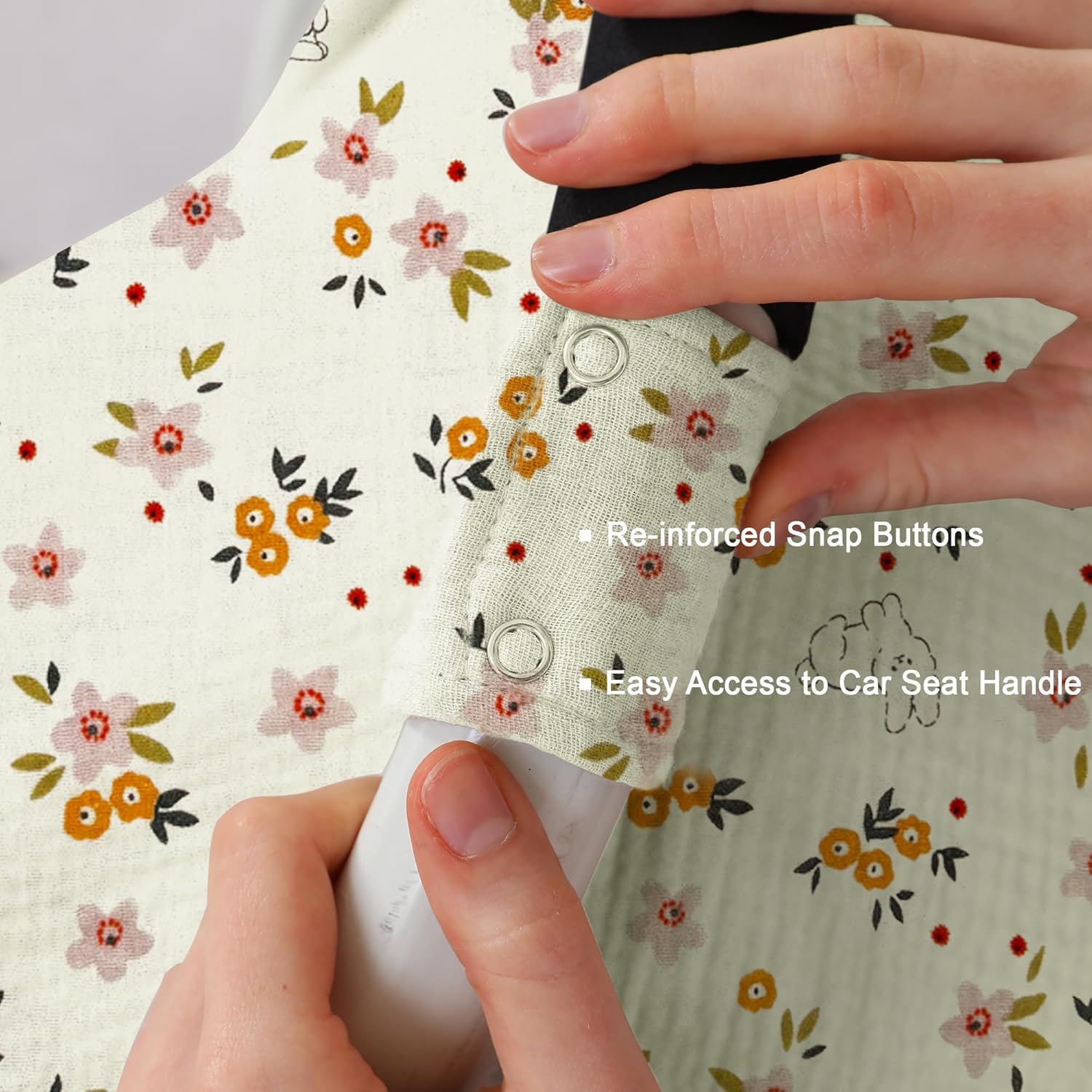 - RE-INFORCED SNAP BUTTONS: The Velcro straps is easily to scratches baby skin & covers fabric, So Seejoy carseat canopy cover designed with snap buttons, Easy Installation, and Durable. size about 45.2 x 33.4 inches, fit most standard car seats.