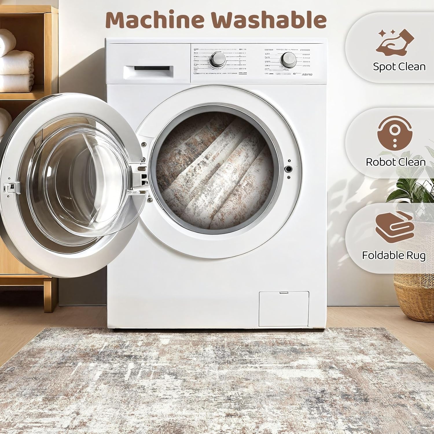 - MACHINE WASHABLE: Our rugs for living room is washable for easy care, directly toss in washing machine in cold water. for minor stains, simply vacuum with a hand-held vacuum or shake off outdoors. for water or coffee stain, wipe with a dry towel promptly