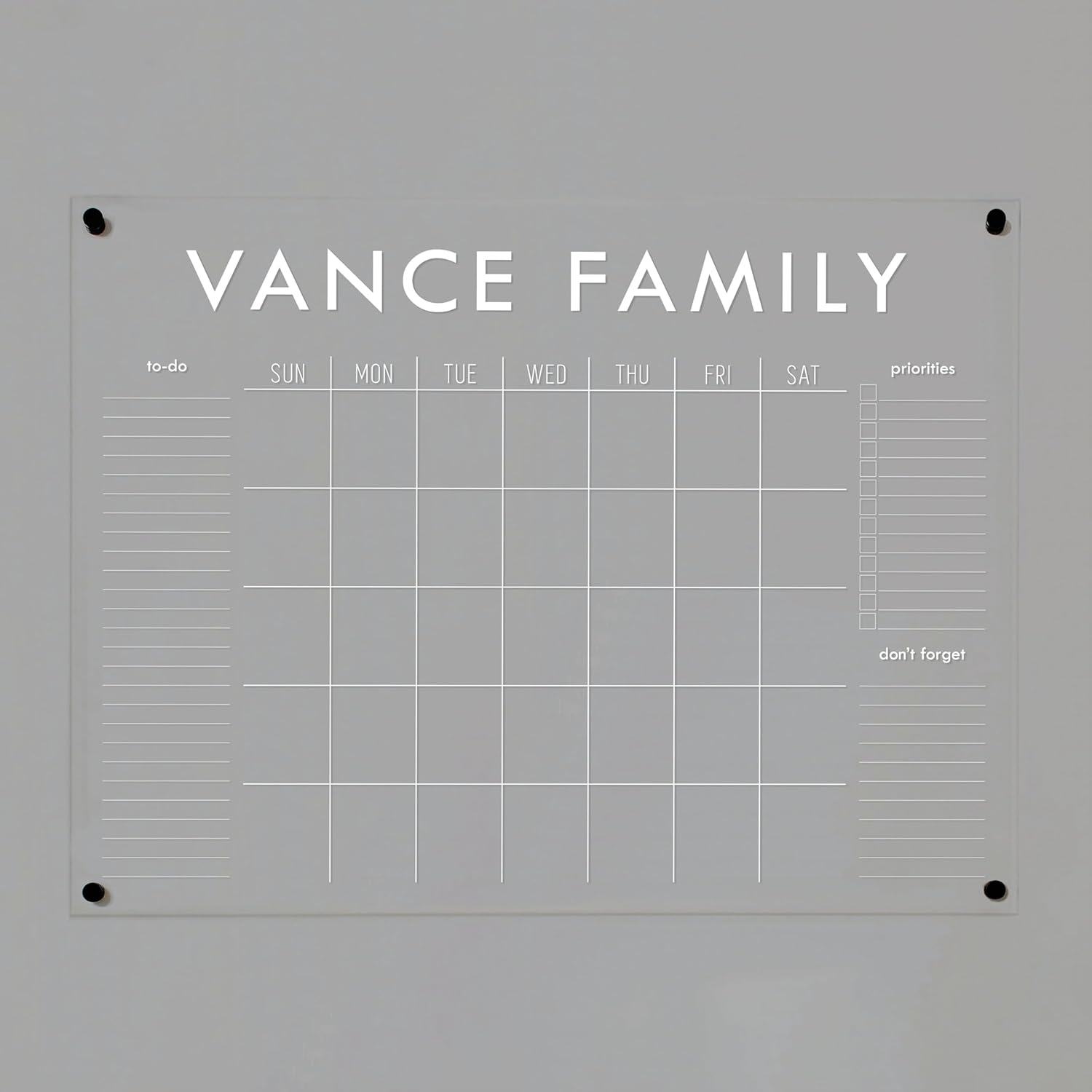 Personalized Clear Acrylic Calendar for Wall, Calendar Whiteboard for Wall, Dry Erase Wall Calendar, Wall Calendar Organizer System for Home (Block, White, 47.5"W x 36"H)