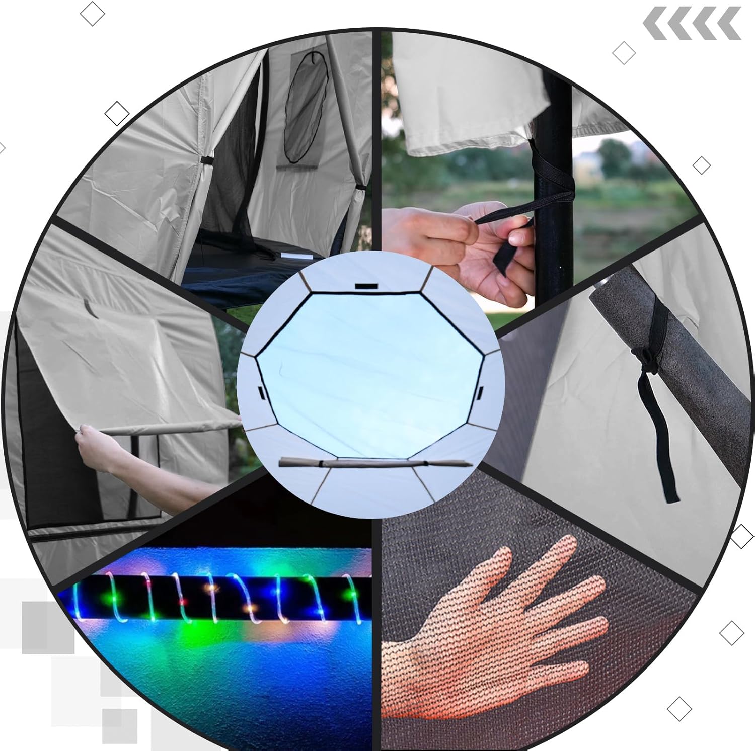 - [Quick and Easy Setup] No complicated tools are required—install this trampoline tent in just a few minutes. Transform your trampoline into a magical campsite for pajama parties, starlit story sessions, or everyday fun, and create lasting family memories.