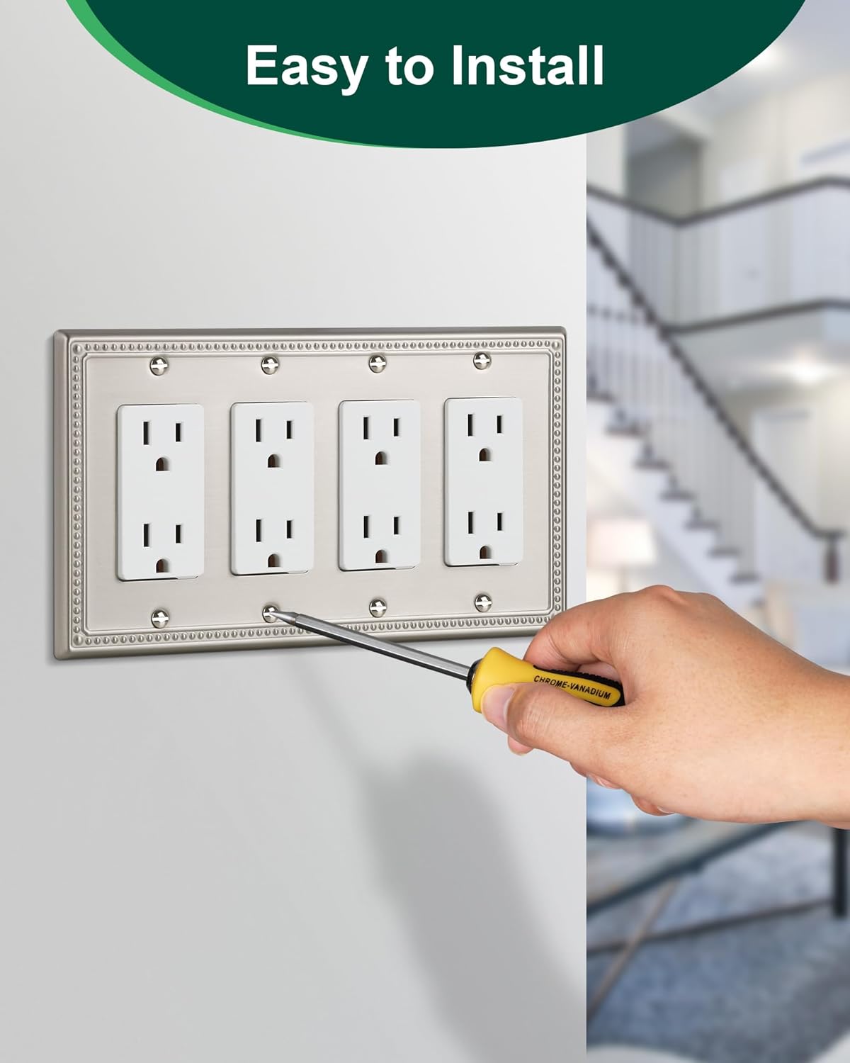 - Durable Metal - Crafted from thick and sturdy metal, this quad decorator outlet cover ensures long-lasting durability and sturdiness. Resistant to tarnishing and corrosion, not easy to break. It will maintain its elegant appearance for years to come.