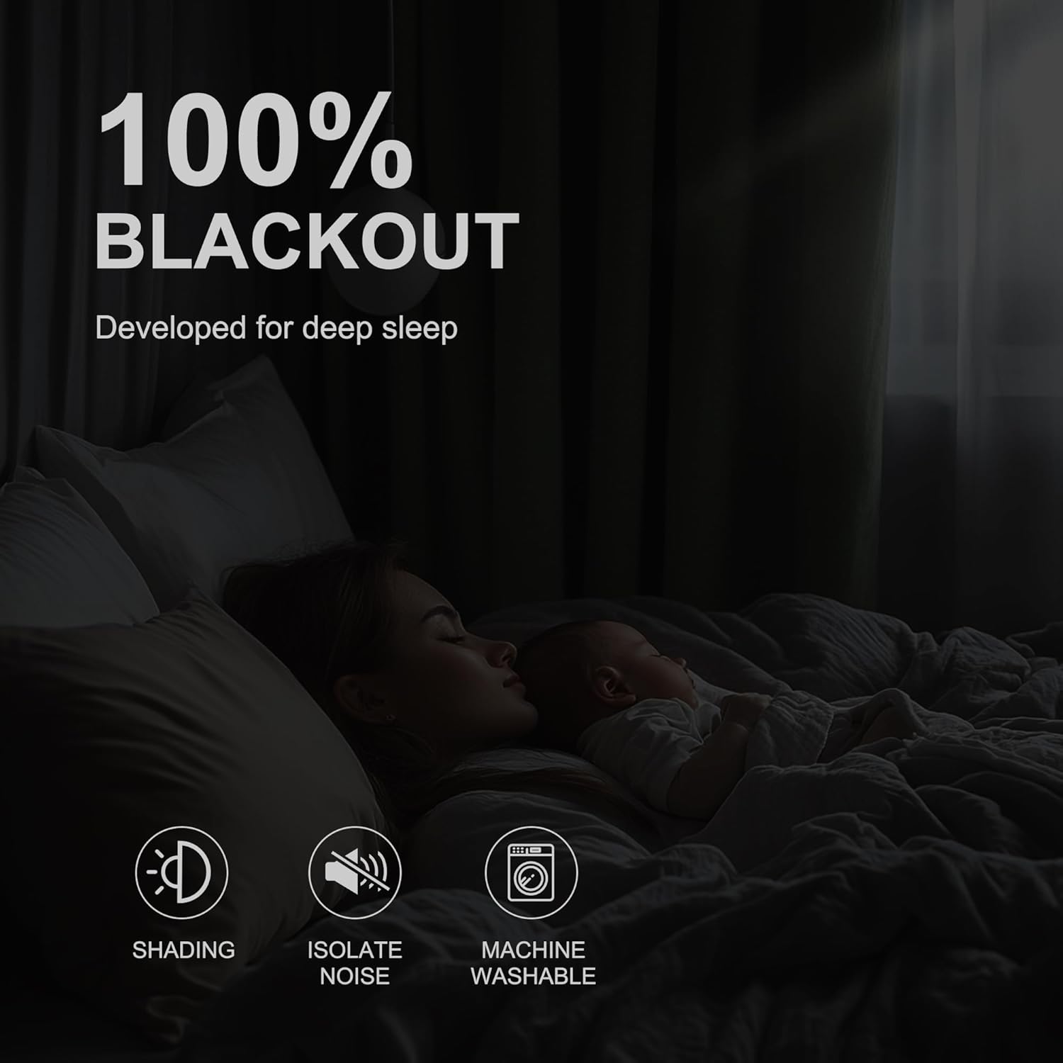 - 100% BLACKOUT: These curtains are manufactured in a STANDARD 100 certified by the OEKO TEX factory. The curtains feature triple weaving with black yarn, an extra light-blocking layer, and high-density weaving, which can 100% physical blackout bright sunlight and UV ray, bring you a full room darkening environment for good night sleep, afternoon nap and weekend lie-ins.