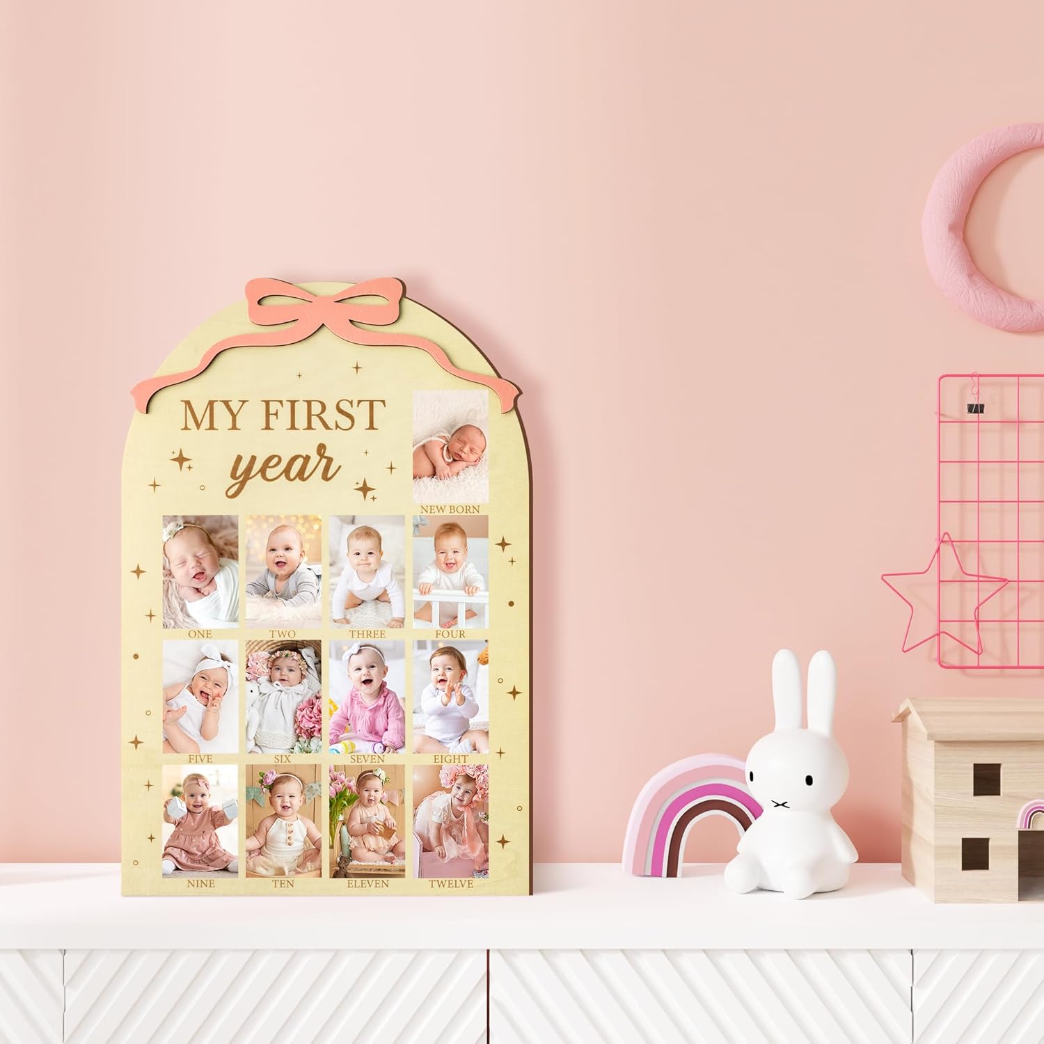 - Thoughtful Gift: Present the new parents with this charming newborn photo wooden board—a perfect gift for a baby shower, a baby's first birthday, or any special occasion including Christmas. Make memories of baby’s first year and cherish them for a lifetime with this unique baby keepsake.