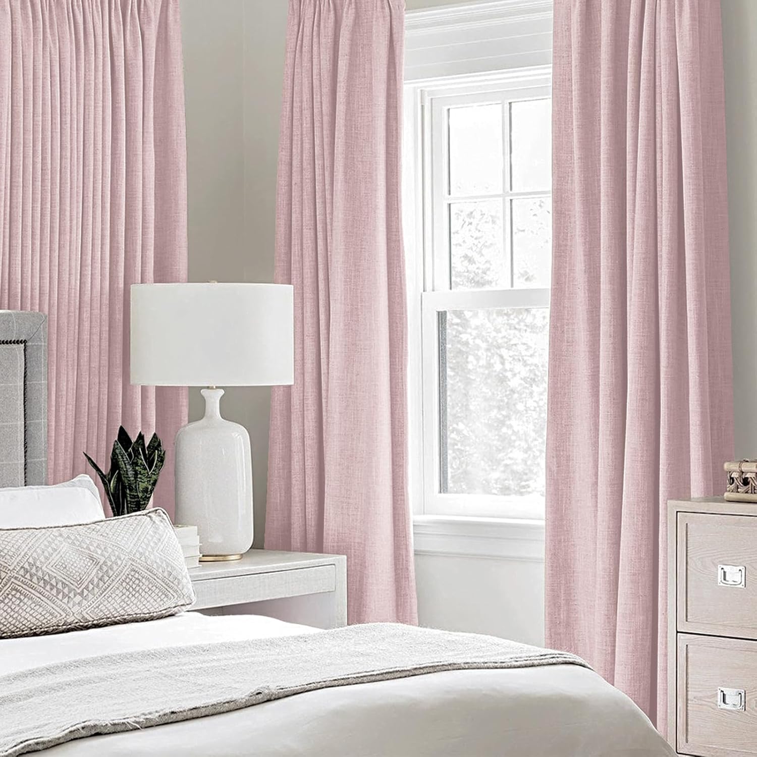 MIULEE Linen Texture Curtains for Bedroom Solid 100% Blackout Thermal Insulated Pink Curtains Grommet Room Darkening Drapes for Living Room Nursery 52x72 Inch (2 Panels)