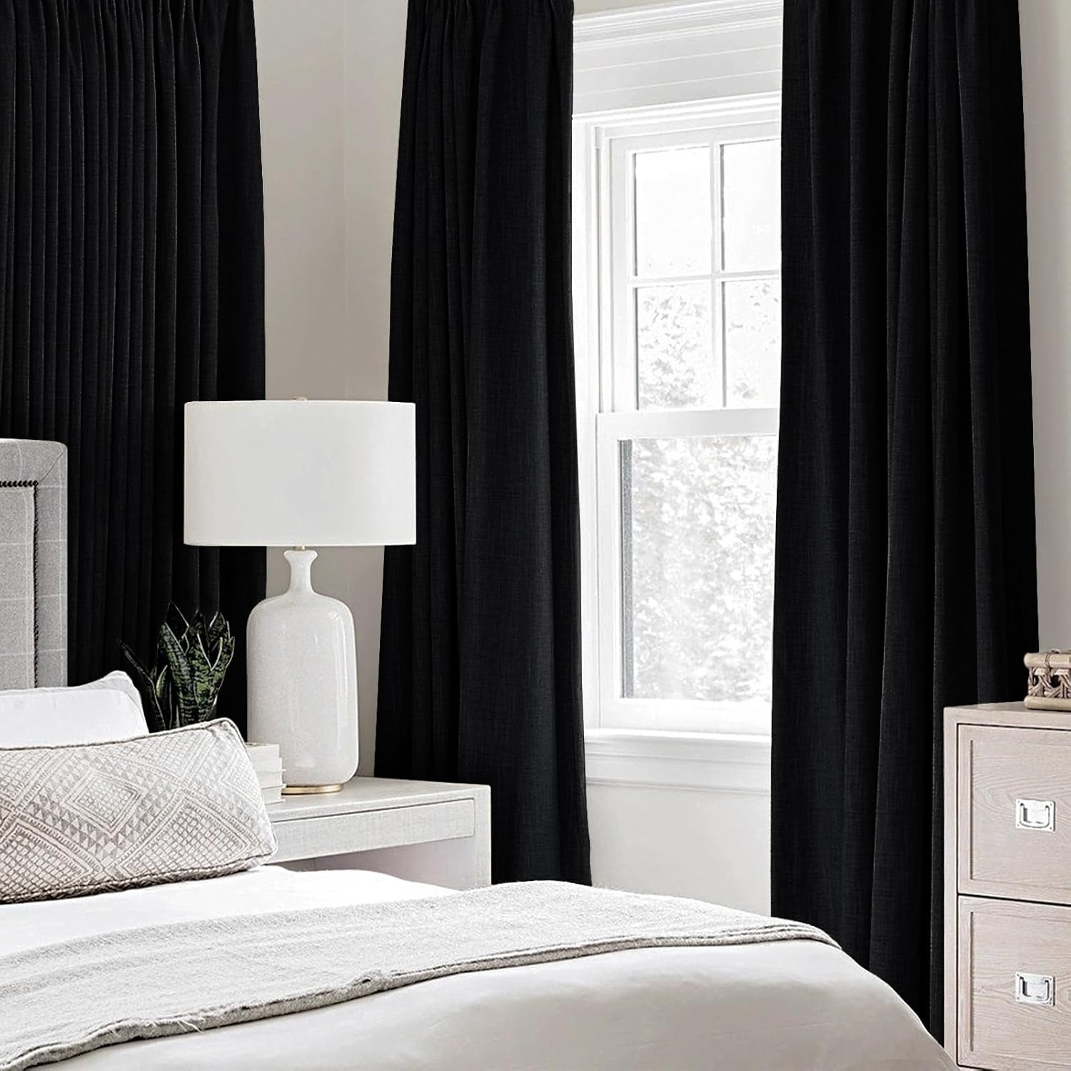 MIULEE Linen Texture Curtains for Bedroom Solid 100% Blackout Thermal Insulated Halloween Black Curtains Grommet Room Darkening Drapes for Living Room Nursery 52x96 Inch (2 Panels)