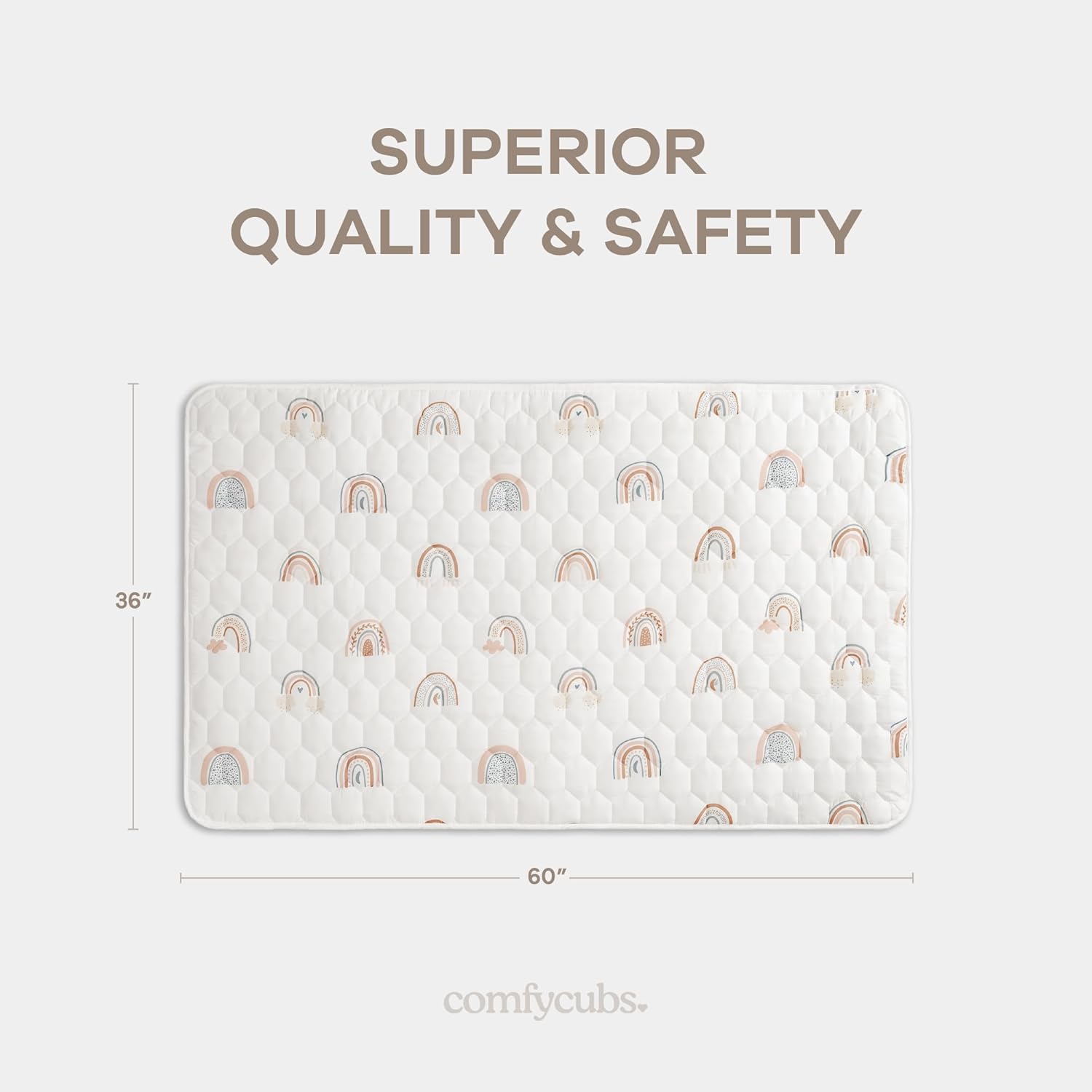 Comfy Cubs Rectangle Kids Play Mat - Small 36 x 60 inches Soft Quilted Baby Floor Mat with Non-Slip Bottom - Plush Design for Toddlers' Playtime and Relaxation - Comfortable and Durable - Rainbow