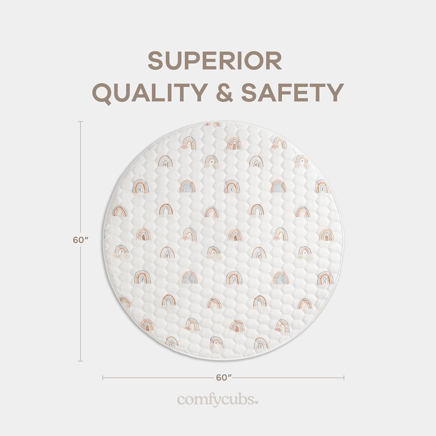 Comfy Cubs Round Kids Play Mat - Large 60 inches Soft Quilted Baby Floor Mat with Non-Slip Bottom - Plush Design for Toddlers' Playtime and Relaxation - Comfortable and Durable - Rainbow