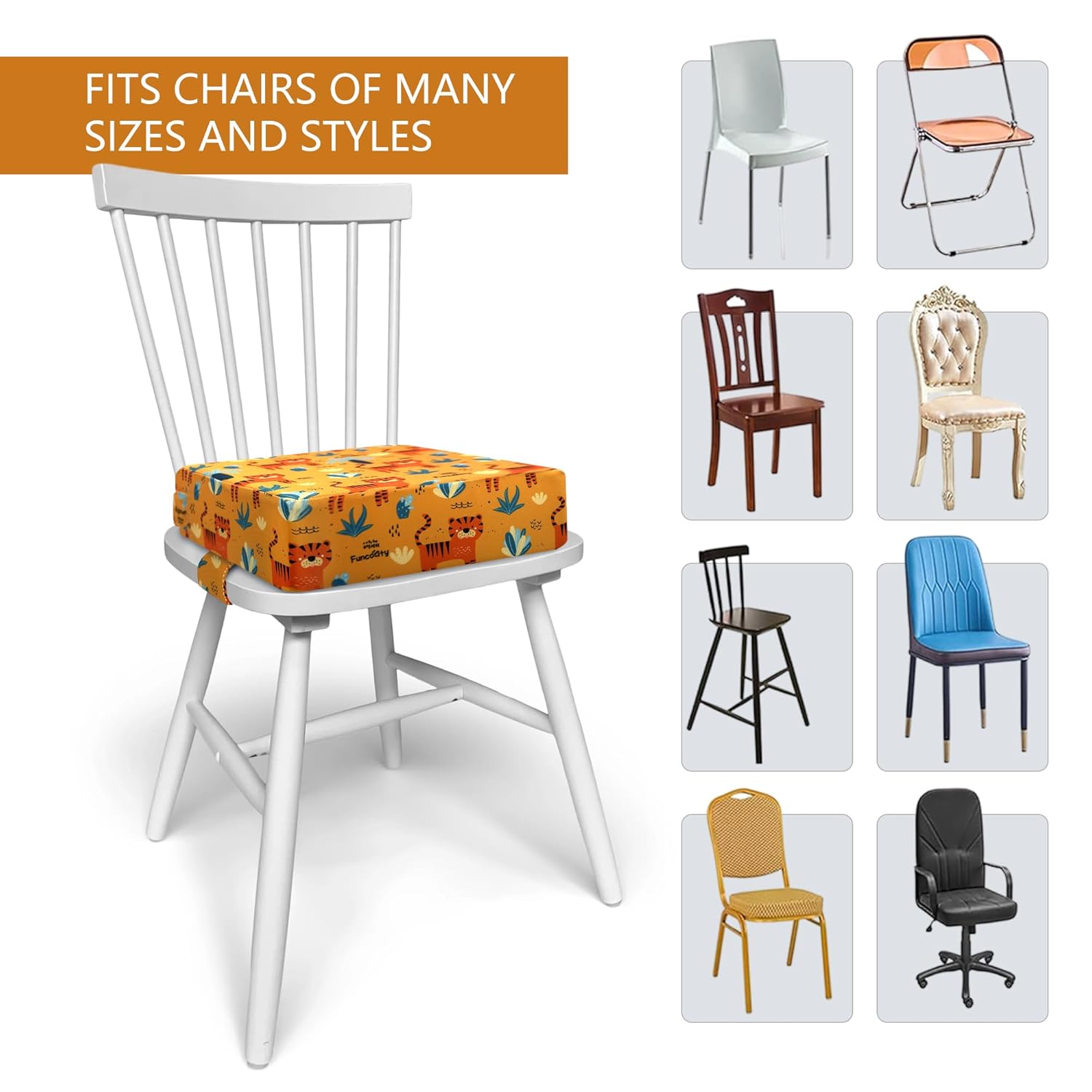 Toddler Booster Seat for Dining Table, Portable Booster Seat for Kitchen Chair, 4 Inch High-Density Foam Cushion with Adjustable Safety Straps and Non-Slip Bottom, Perfect for Kids Travel and Daily