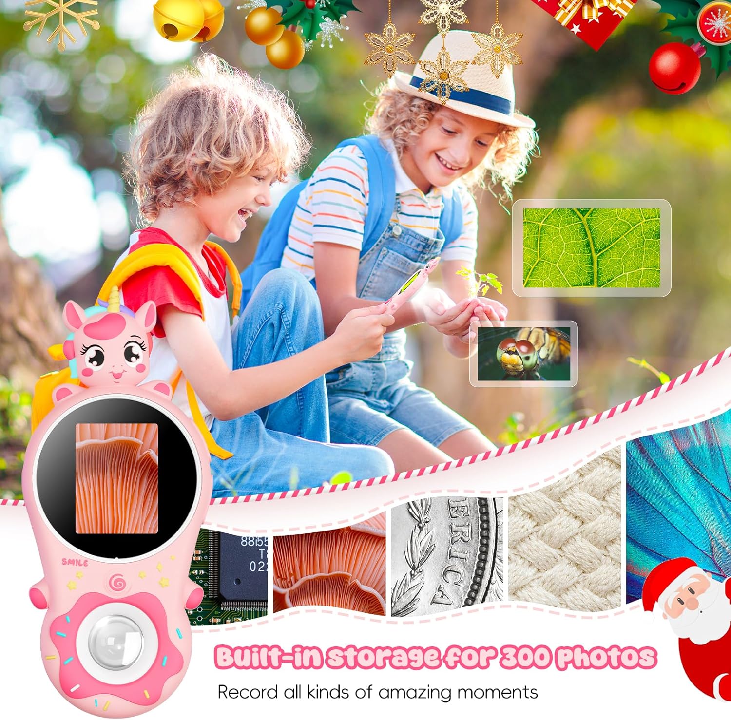 Kids Microscope,Ashfly 200X Magnifier for Kids,Mini Pocket Portable Digital Microscope for Educational Science Toys,Birthday Gifts for Age 3 4 5 6 7 8 Girls