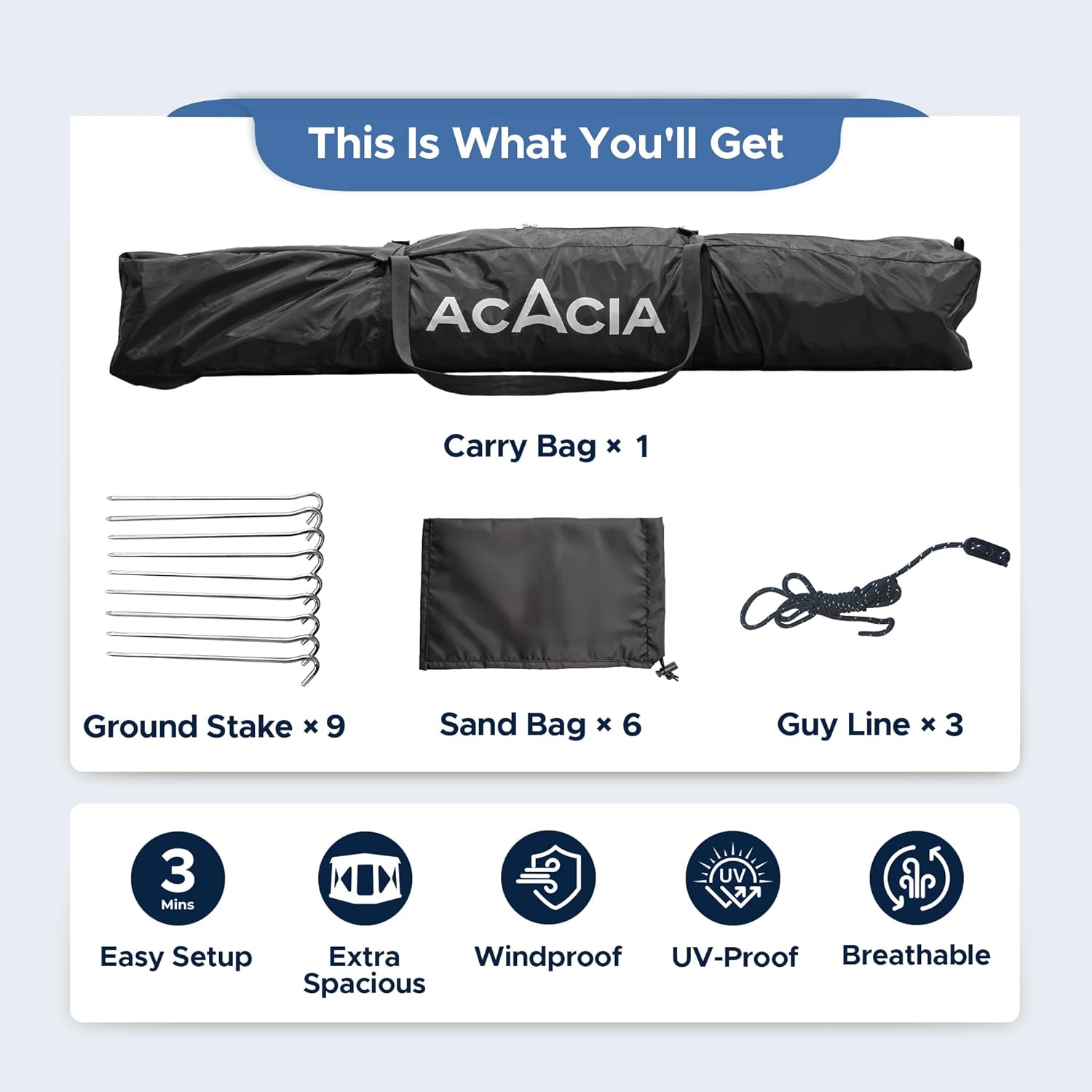 ACACIA Beach Tent Sun Shelter | 4-Person Portable Camping Tent with UPF 50+ Protection | Easy Setup Pop up Sun Shade | 10×10ft Privacy Sunshade for Camping & Backyard