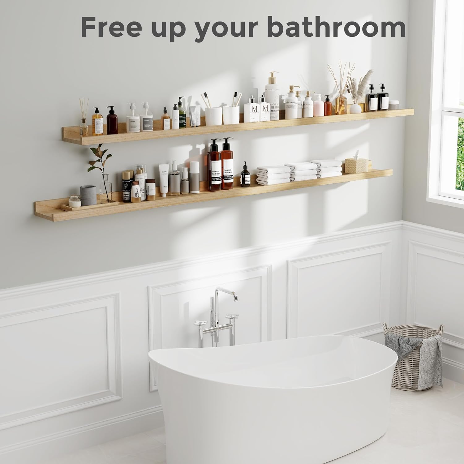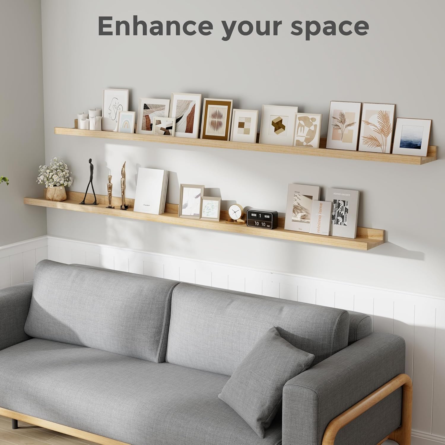 Picture Ledge Shelf, Floating Shelves Set of 2, 72 Inches Long Large Nursery Book Shelves for Toys Storage, Kids Bookshelf Wall Mounted for Living Room Bedroom Decor Books Photo Frames, Natural