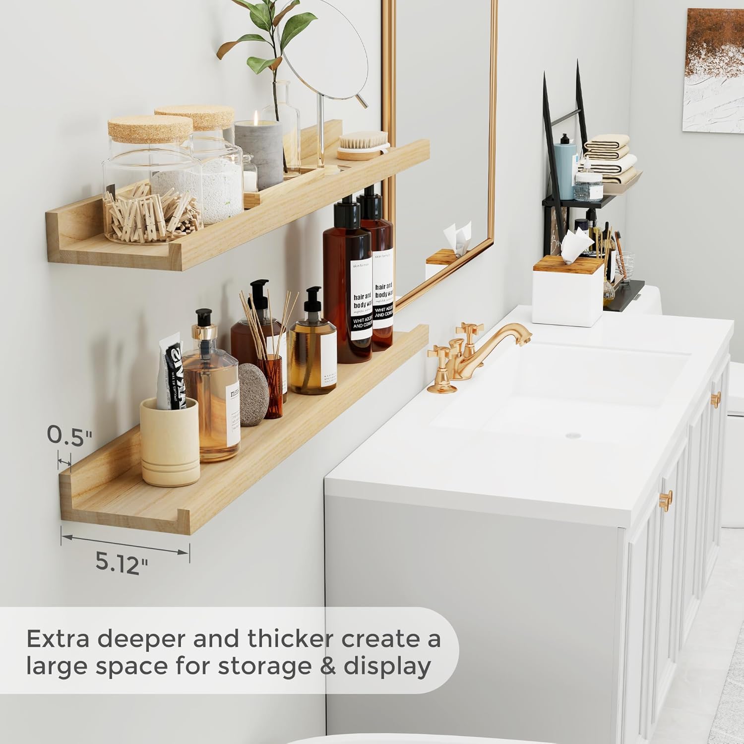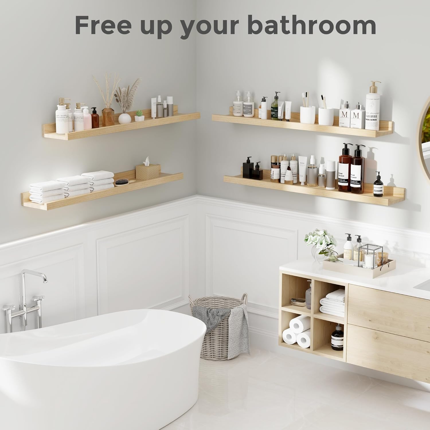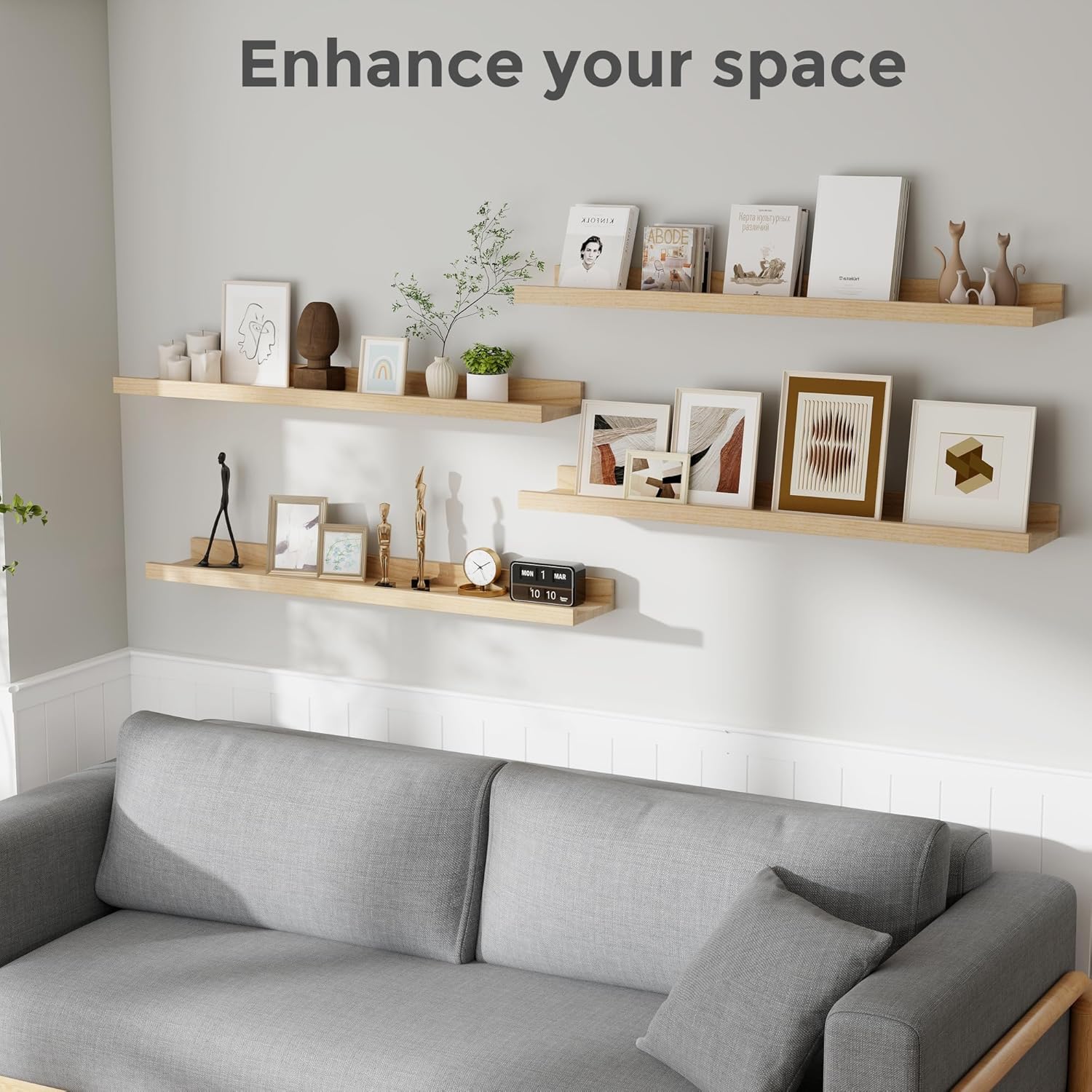 Picture Ledge Shelf, Floating Shelves Set of 4, 36 Inches Nursery Book Shelves for Toys Storage, Kids Bookshelf Wall Mounted for Living Room Bedroom Decor Books Photo Frames, Natural