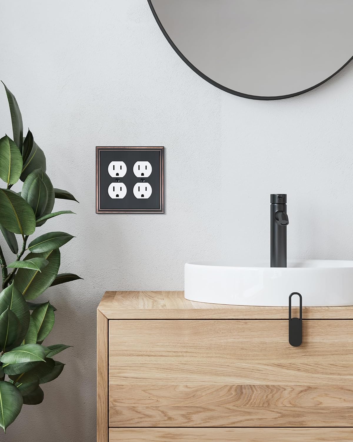 - Stylish yet Simple - Beautifully designed with simple, clean lines and exquisite aged bronze finish, our double duplex outlet cover adds a touch of elegance and sophistication to your decor. The brushed texture further enhances its stylish appeal, effortlessly complements any room, adding an instant touch of elegance and charm.