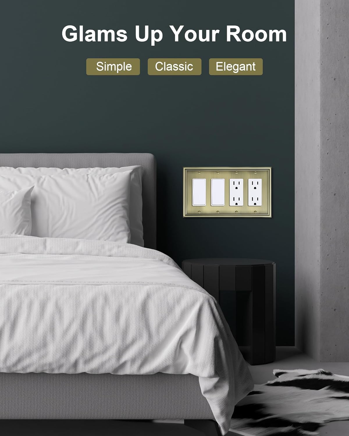 - Durable Solid Zinc Alloy - Constructed from thick and sturdy zinc alloy, the 4 gang switch plate offers exceptional durability and sturdiness, easier to clean and maintain. It is resistant to high impact, tarnishing, and corrosion, unbreakable. Ensuring it remains a stunning and long-lasting addition to your home.