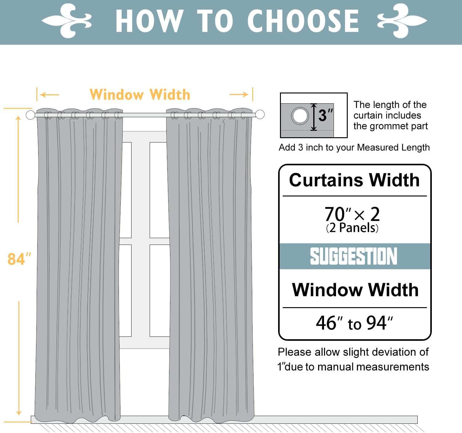 - SET DETAILS: 2 panels per package. Each panel measures 70 inch wide by 84 inch long with 10 silver metal grommets (1.6 inch inner diameter) on top, easy to install and slide.