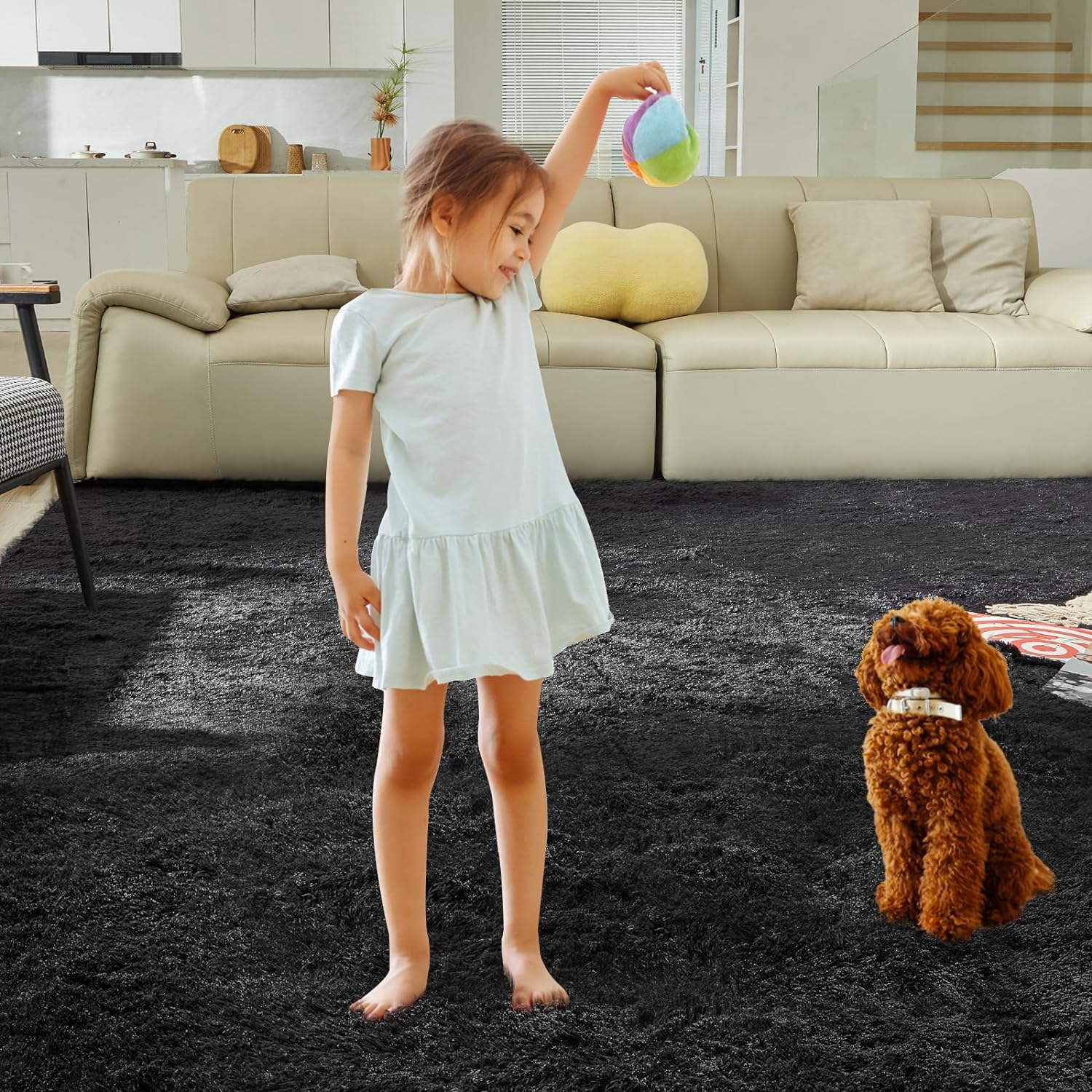 Ultra Soft Rug for Living Room, 8X10 Fluffy Shag Area Rug for Bedroom, Modern Shaggy Carpets Fuzzy Rug for Teens Dorm Nursery Home Decor Aesthetic, Upgrade Anti-Skid Durable, Black