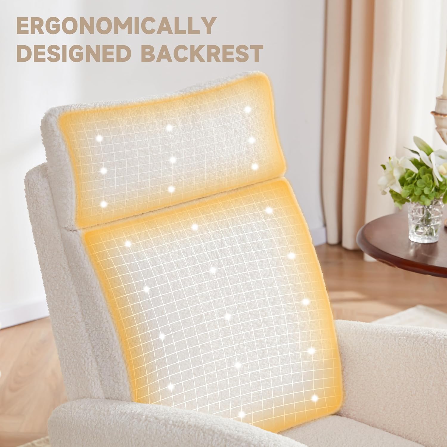 Nursery Rocking Chairs with Foot Rest, Rocking Chair Nursery Chair with High Back, Glider Rocking Chair, Baby Nursery Glider Rocker, Nursing Chair Accent Living Room (Teddy White)