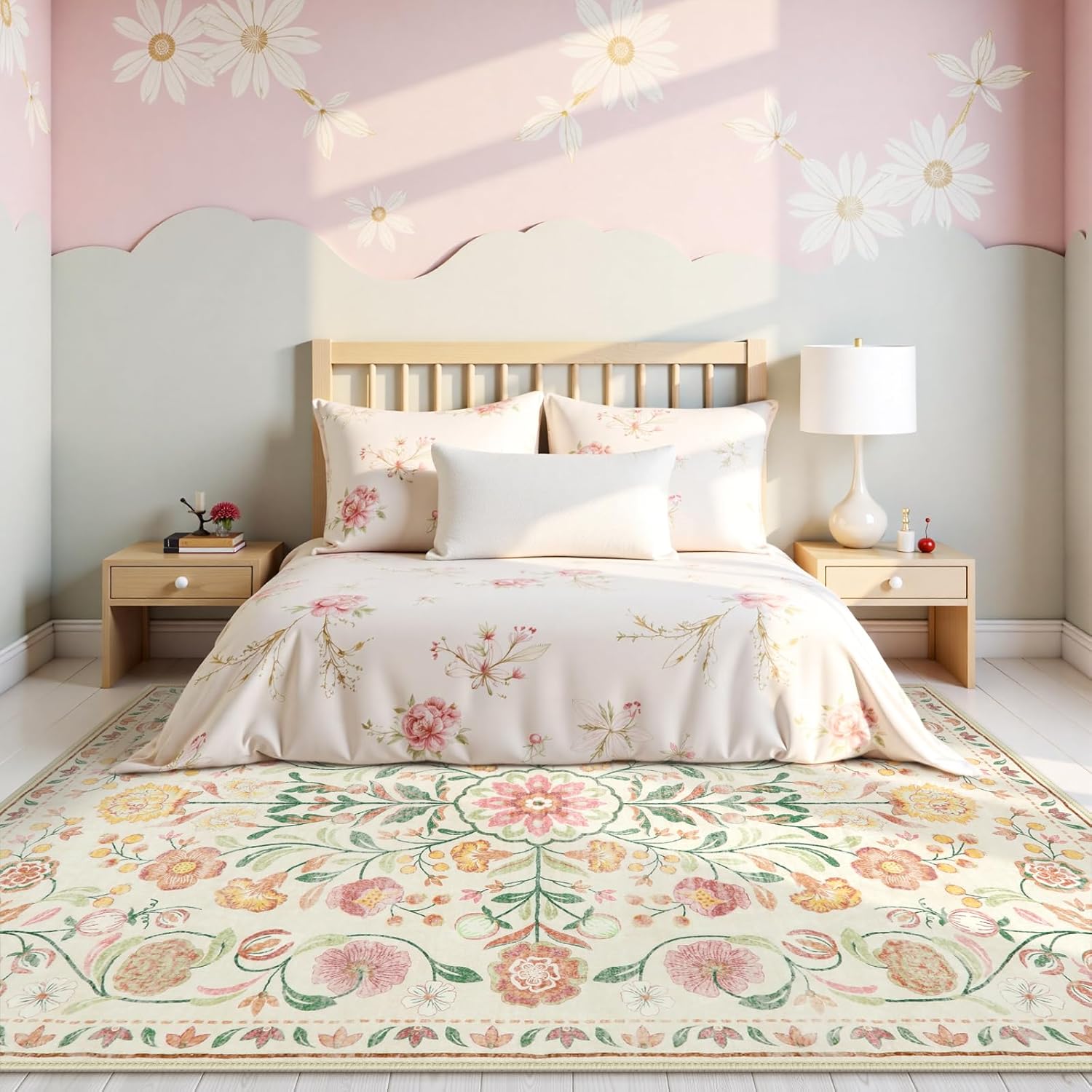 - Soft Surface: Our boho floral rug offers a soft, comfortable surface that's suitable for homes with children and pets. It provides warmth and coziness for barefoot play, making your home environment more inviting and relaxing