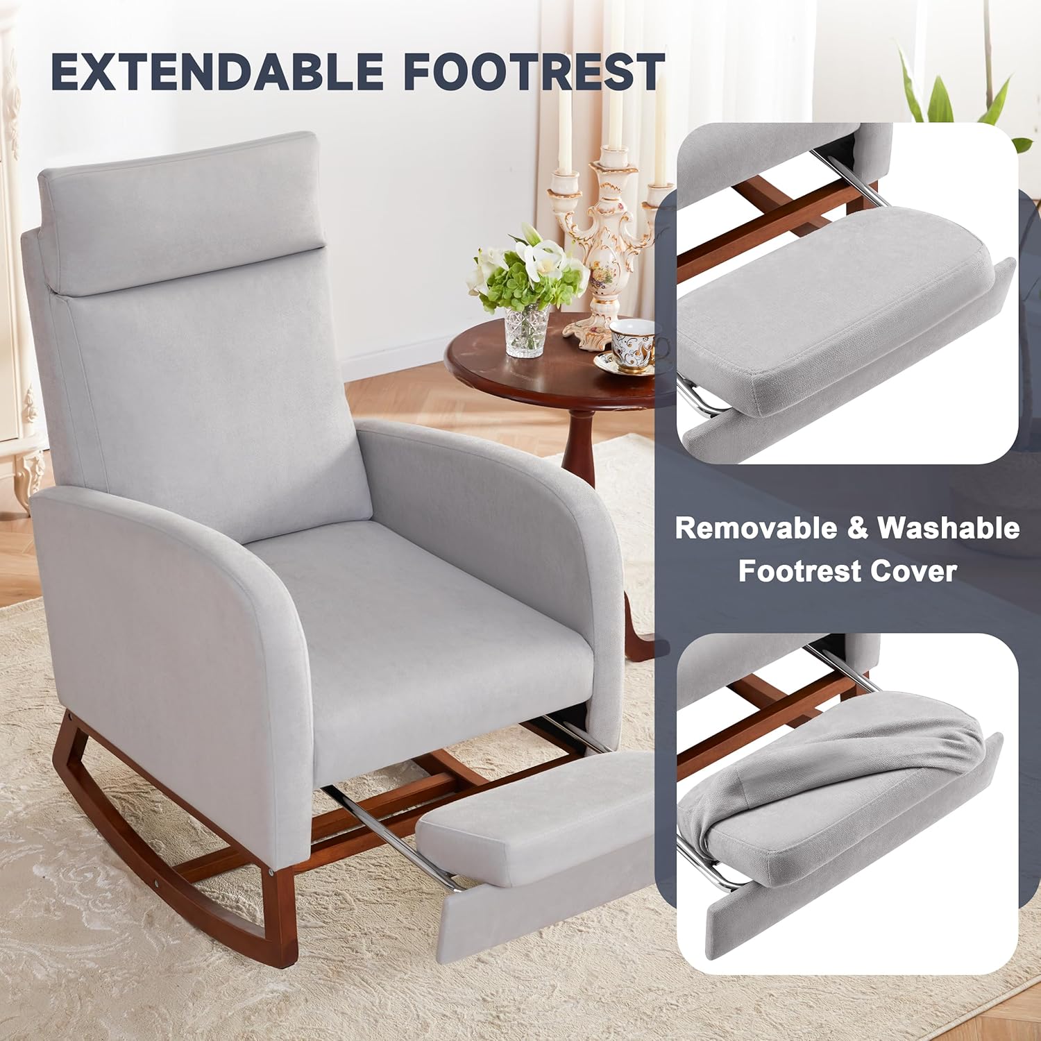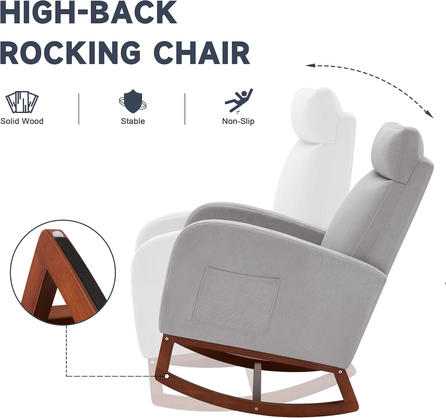 Nursery Rocking Chairs with High Back, Rocking Chair Nursery Chair with Foot Rest, Baby Nursery Glider Rocker, Nursing Chair, Glider Rocking Chair Accent Living Room (Linen Grey)