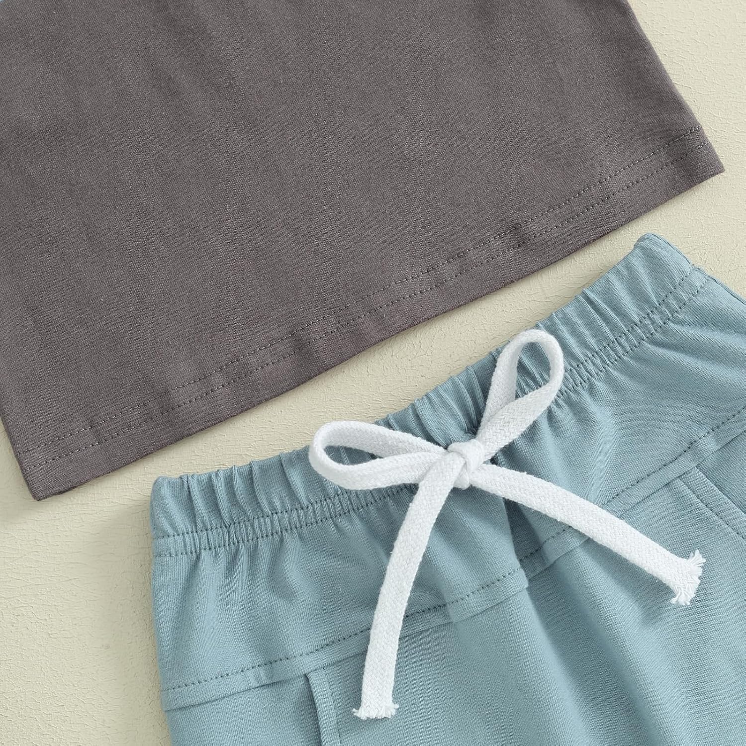 • SUMMER OUTFIT: Cute baby boy clothes,The boys' 2-piece outfit is stylish and easy to wear. Summer is here and it's time to get your ready for all the fun in the sun.Infant Baby Boy Summer T Shirt Shorts Outfits Clothes Set.Toddler Baby Boy Summer Outfit