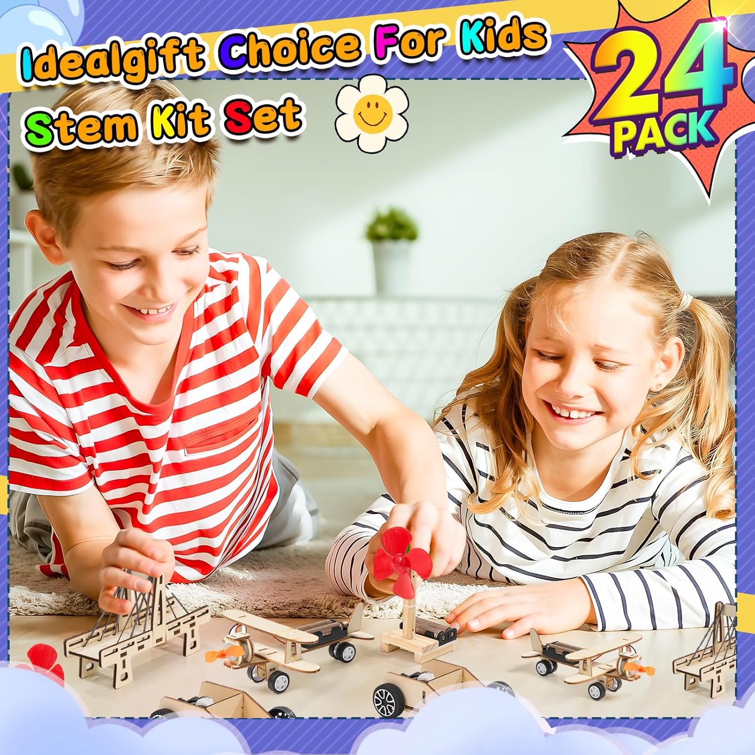 - 【24 PCS Party Favors Set】Our stem kit project set include a Pull trolley, a glider, a Cable-stayed bridge, a electric fan, it`s great for kids age over 6 years old. Come and build your own engineering toys! Tips: AA BATTERIES ARE NOT INCLUDED.